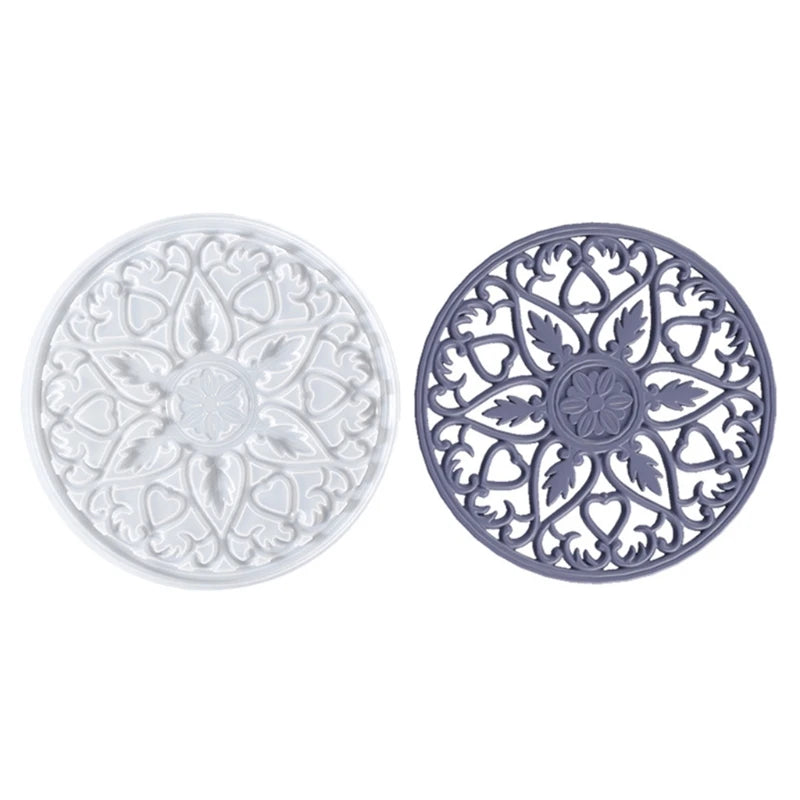 Create beautiful flower pattern placemats with this silicone mold. Perfect for epoxy resin casting to make unique coasters and cup mats. Ideal for home decoration projects.