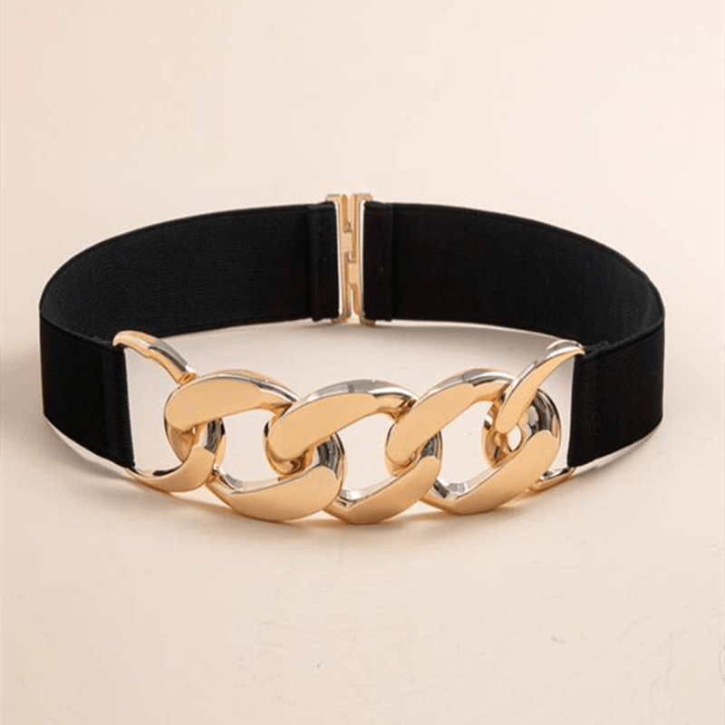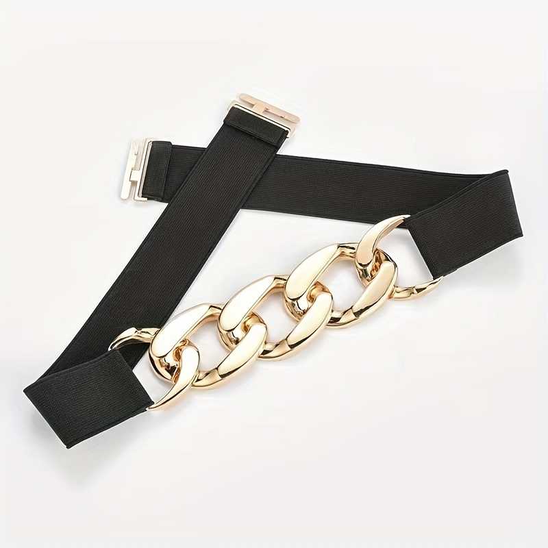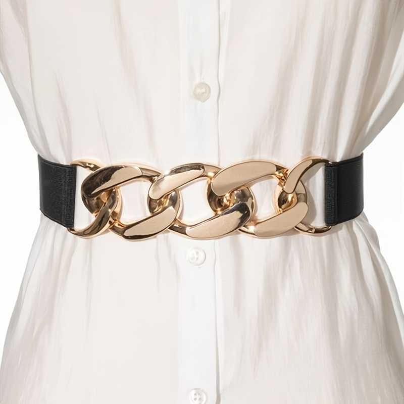 Golden Chain Wide Waist Belt Elegant Hollow Out Elastic Belt for Women