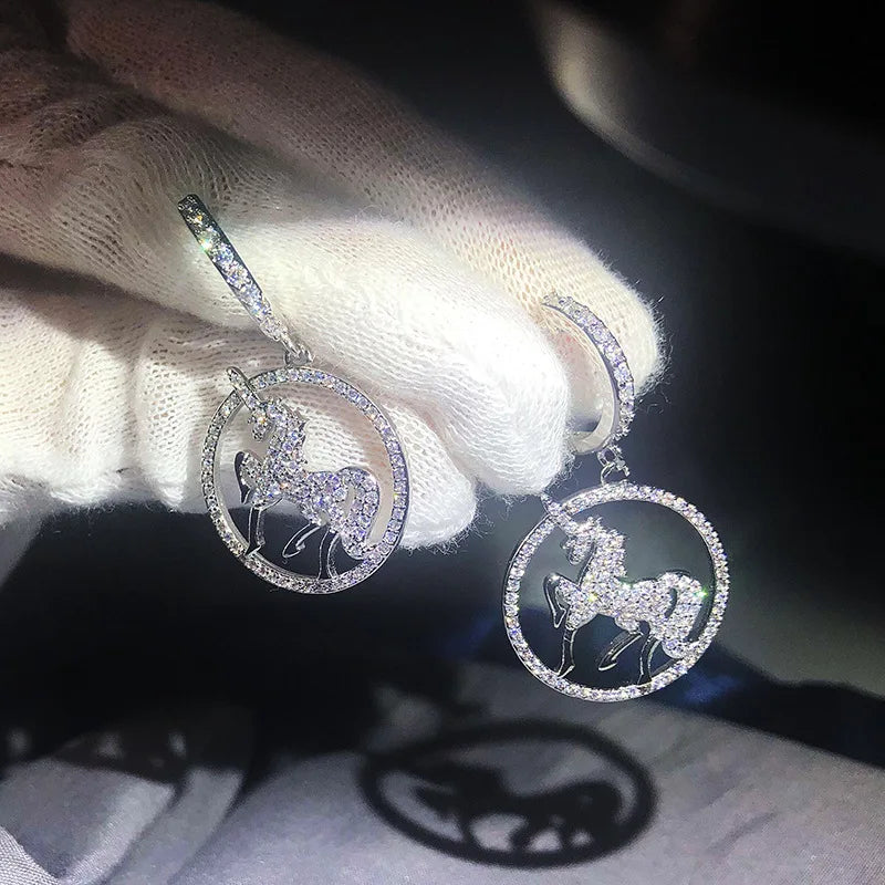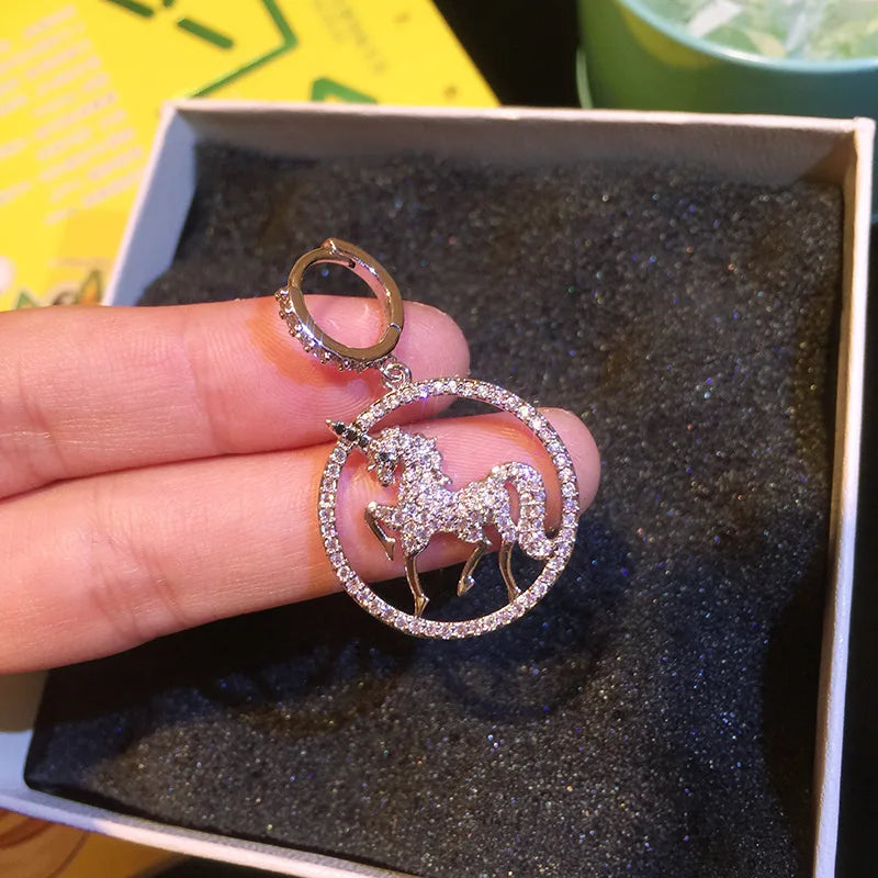 Add a touch of personality and style with these high round unicorn earrings featuring zircon accents. Perfect for those who want to showcase their unique temperament.