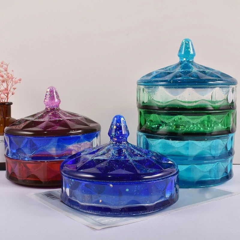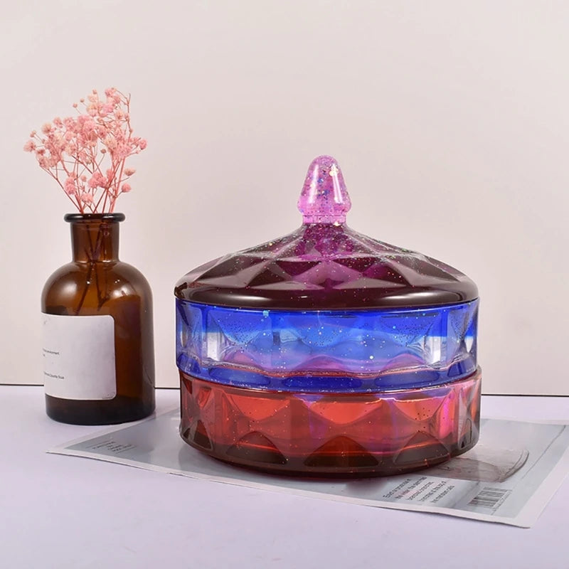 This epoxy resin container is perfect for storing jewelry, candies or other small items. It can also be used to hold desktop crafts or as a home decoration. The mold is easy to use and can create beautiful designs.