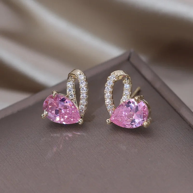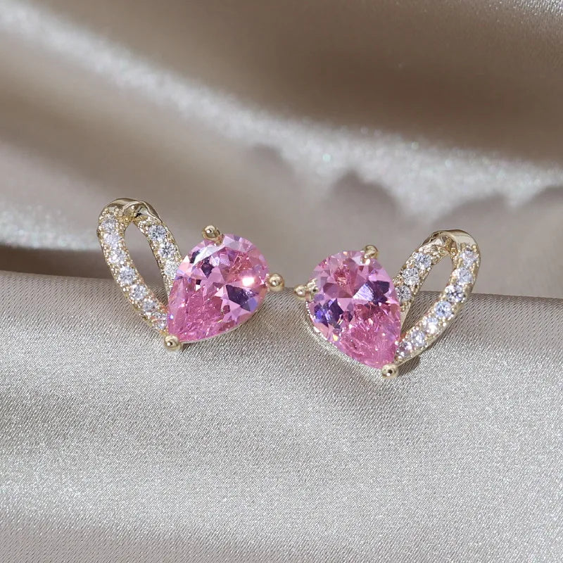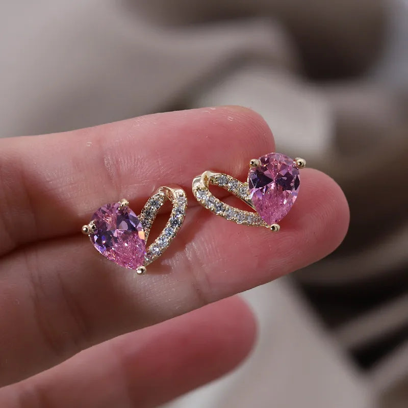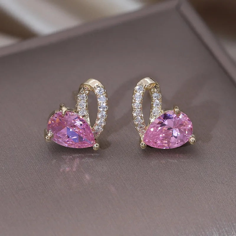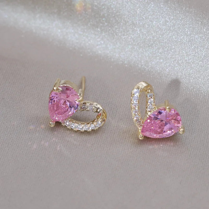 - Delicate pink zircon love earrings