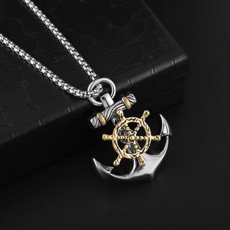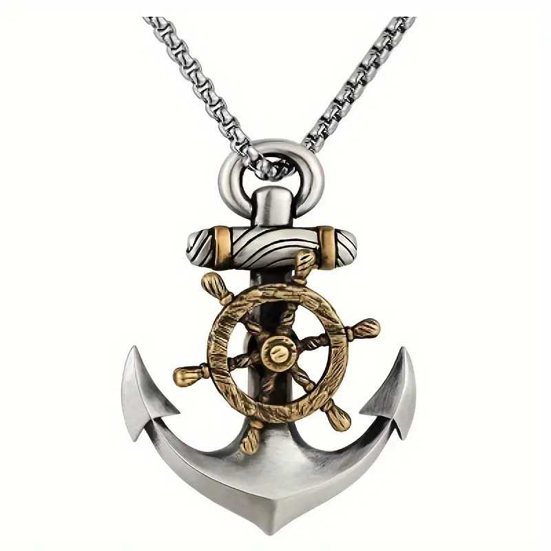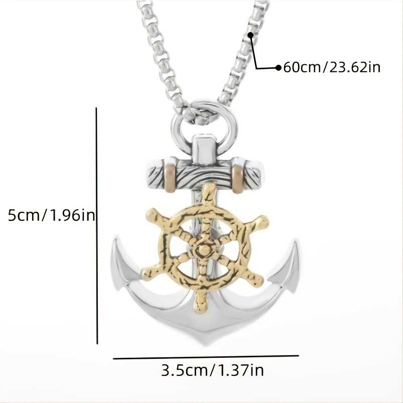 Men's Silver Plated Rudder Anchor Pendant Necklace with Lobster clasp