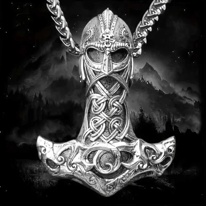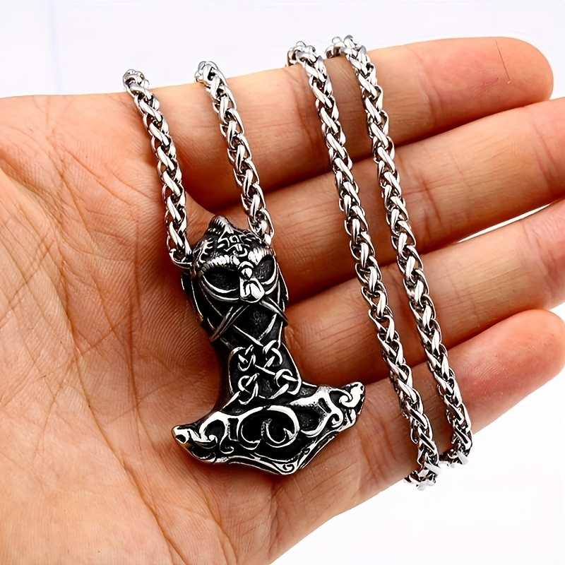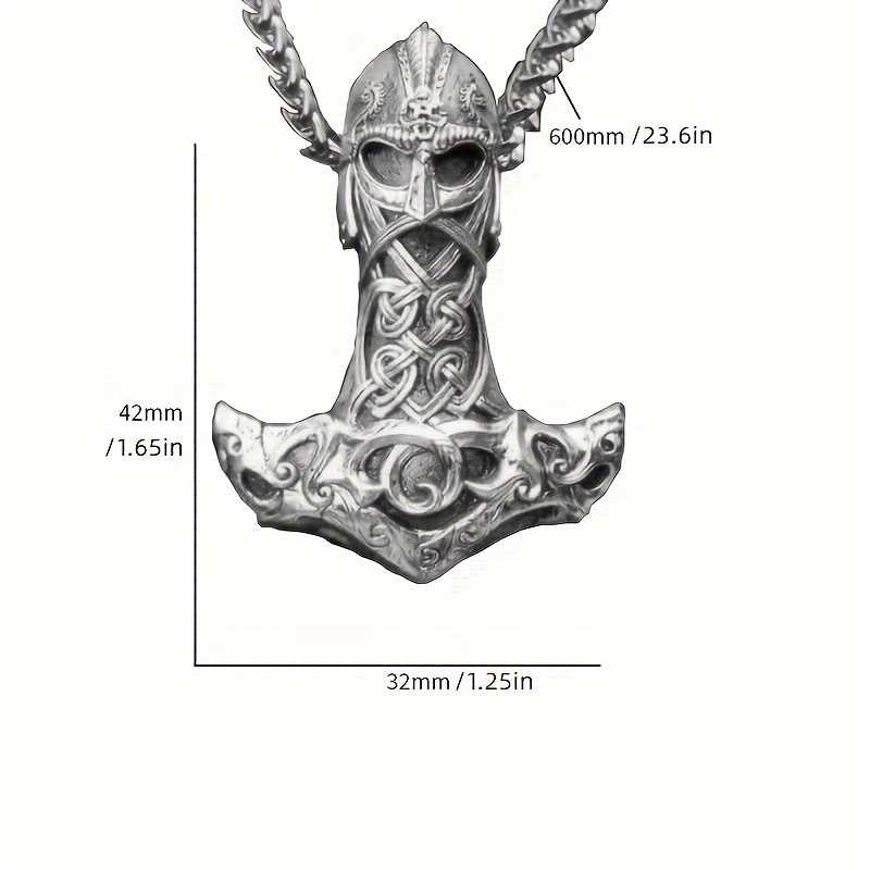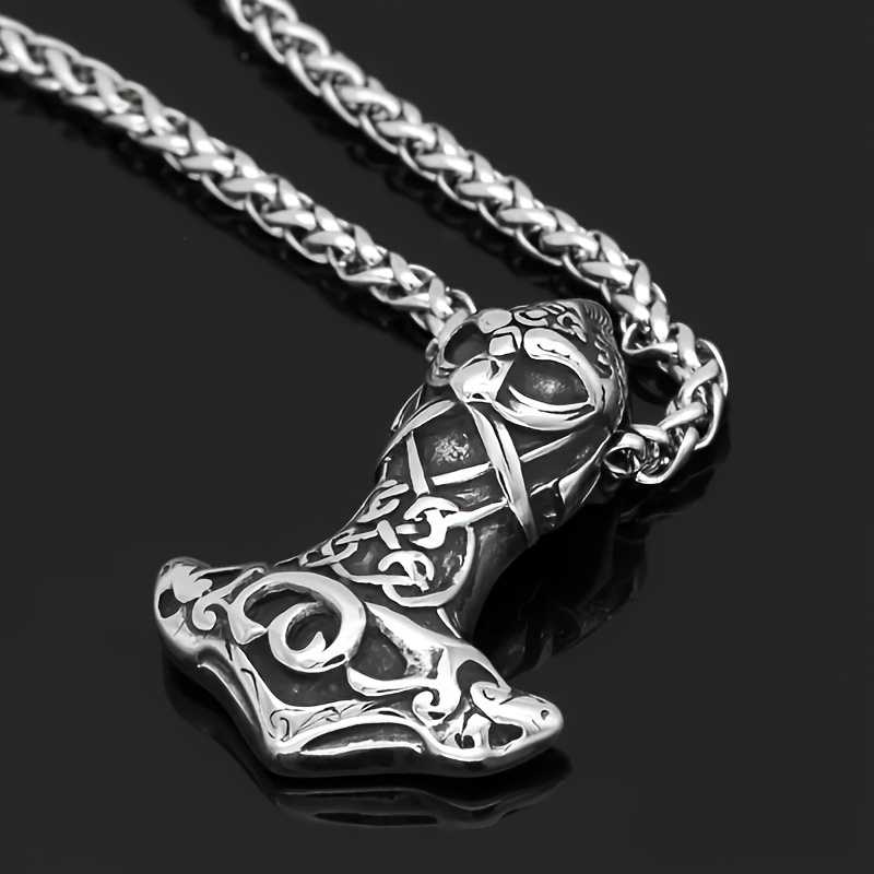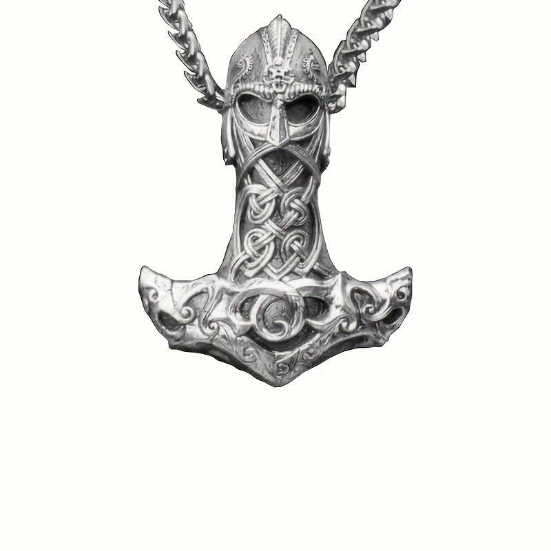 Men's Silver Plated Thor Hammer Pendant Necklace with Chain