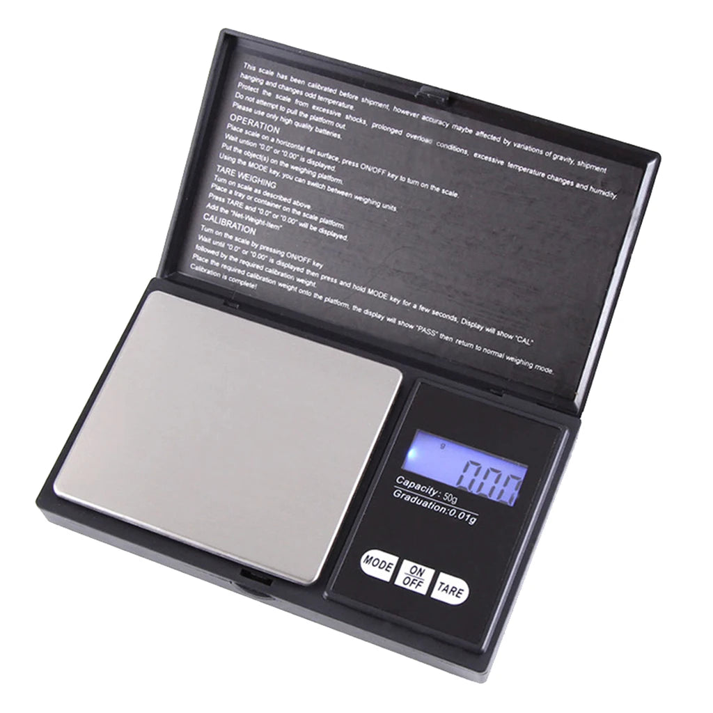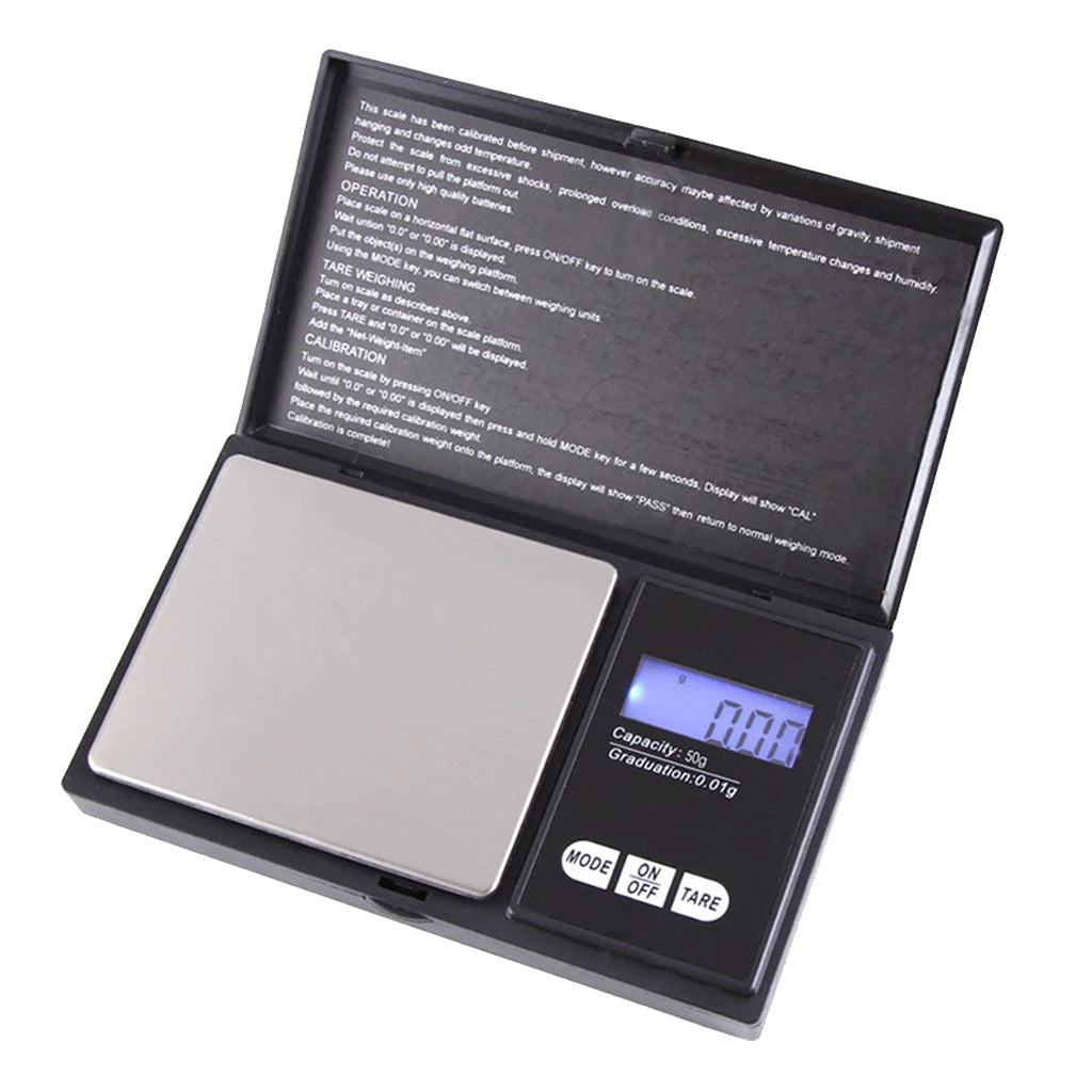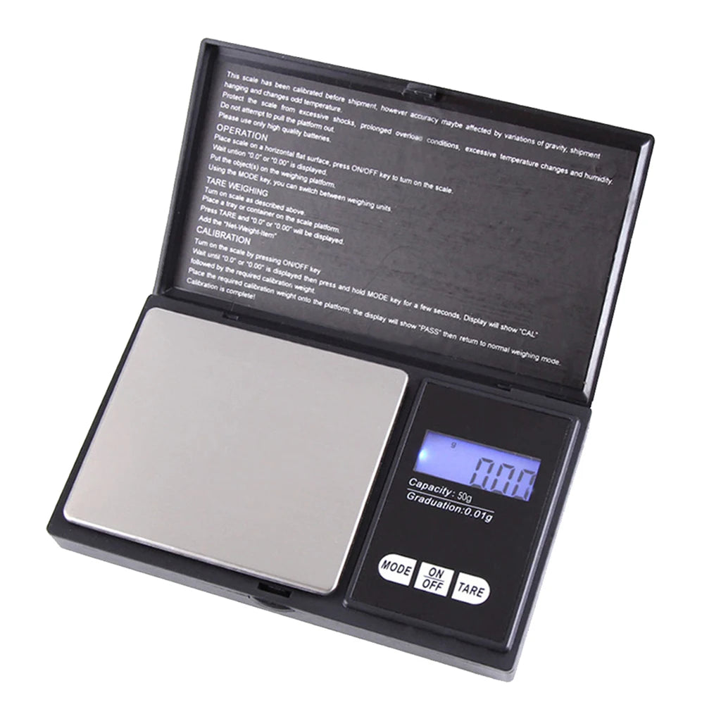 This mini digital scale is perfect for weighing jewelry, grains, and other small items. It has a capacity of 50g with a precision of 0.01g. The pocket size makes it easy to carry around and use on the go.