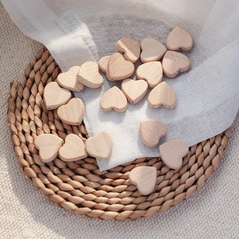 Create adorable baby teethers and DIY crafts with these natural wooden heart spacer beads. Perfect for adding a touch of charm to your handmade projects.