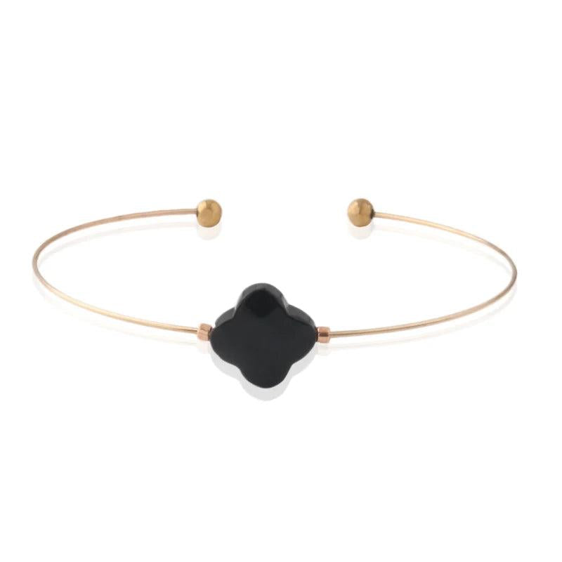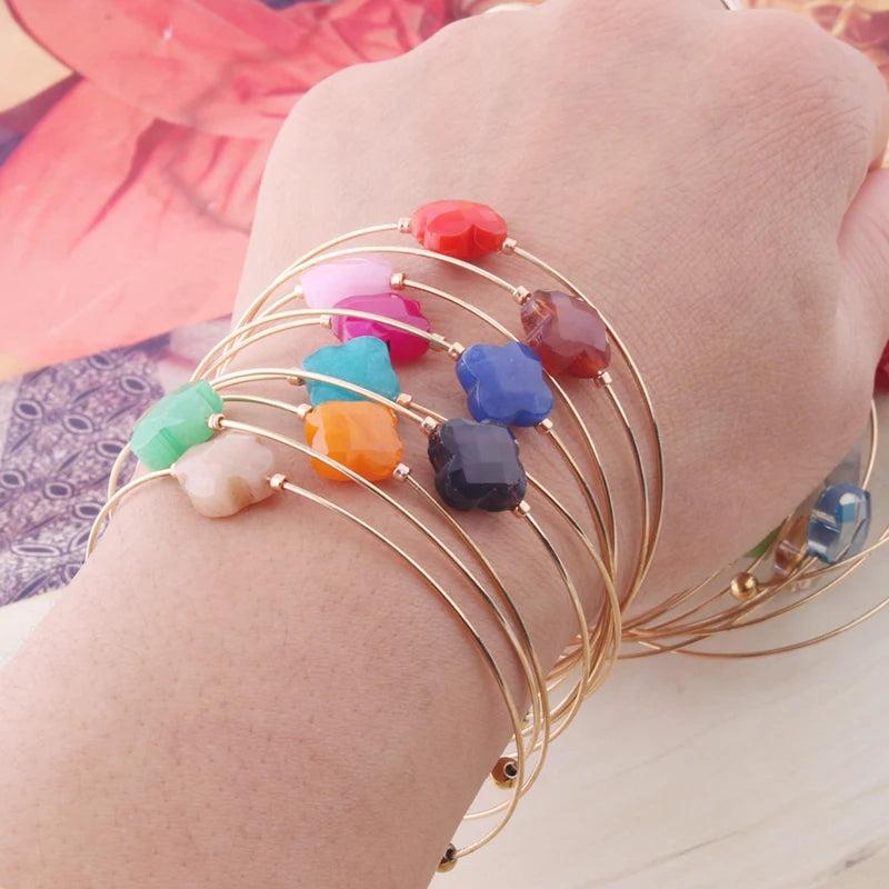 This charm bracelet features natural stone beads on a bohemian wooden base, with a star charm. Add a touch of nature-inspired style to your outfit.