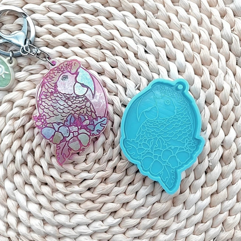 Create personalized parrot keychains with this silicone mold. Ideal for resin or pendant crafting projects.