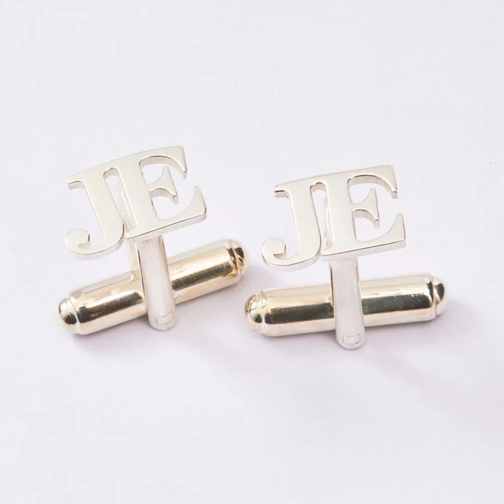 Elevate your style with these stainless steel cufflinks featuring 1-3 custom initials. Perfect for groomsmen gifts or adding a personalized touch to your formal attire.