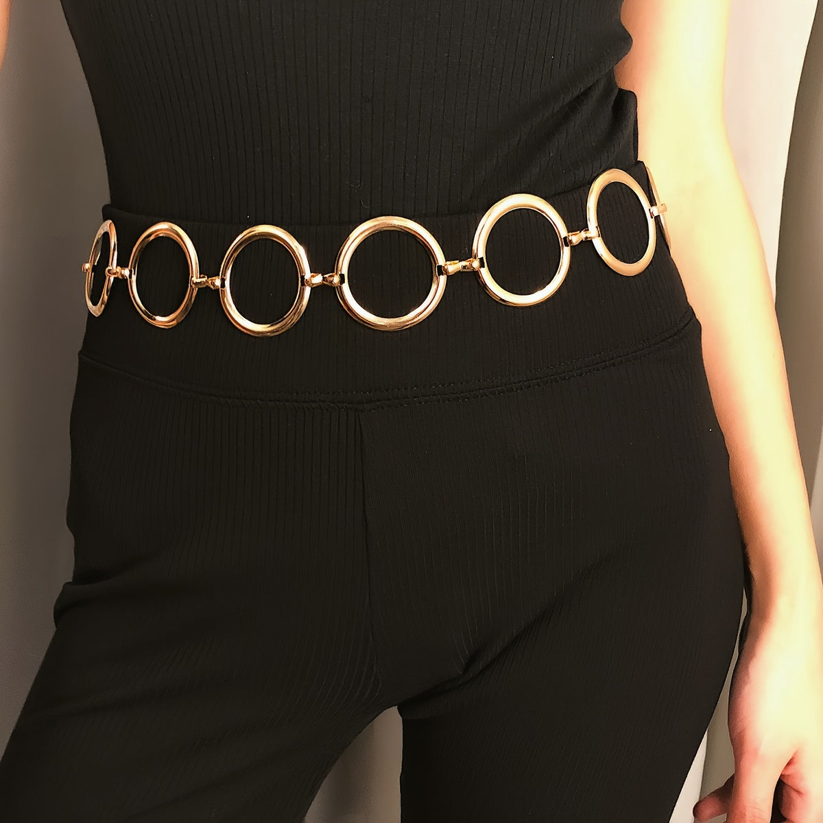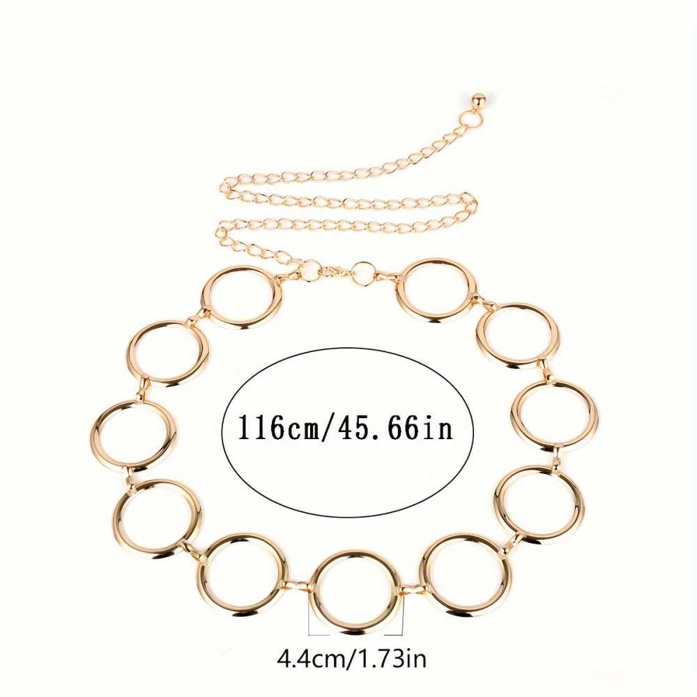 The Punk Round Chain Belt is an eye catching accessory designed for the bold and fashionable woman. Combining edgy style with versatility, this belt is perfect for adding a unique flair to any outfit. The standout feature of this belt is its unique round chain links, which create a striking visual appeal. This design not only makes a fashion statement but also adds texture and depth to your look. Crafted from high quality metal with a stunning golden finish, this belt exudes luxury and sophistication. The gleaming surface catches the light beautifully, ensuring you stand out in any crowd. Designed for comfort and convenience, this belt features an adjustable length, allowing it to accommodate various body shapes and sizes. Enjoy a perfect fit that enhances your silhouette and provides all day comfort. This belt is perfect for pairing with dresses, jeans, or skirts, making it a versatile addition to your wardrobe.