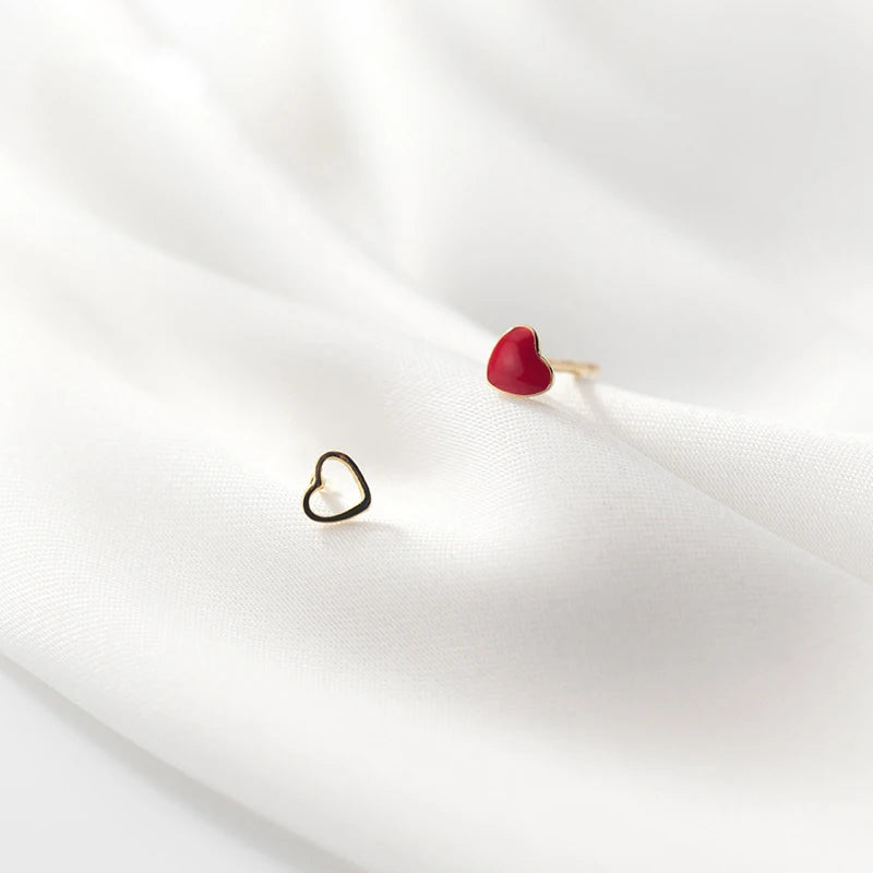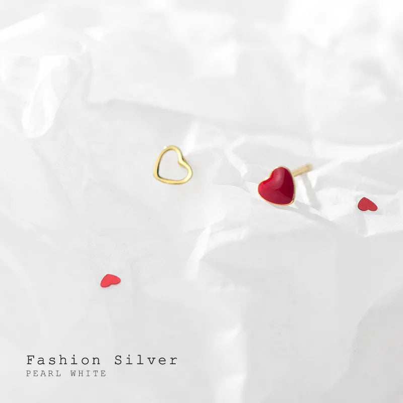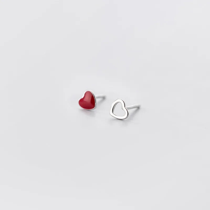Add a touch of elegance with these asymmetrical stud earrings featuring a red heart design. Made with 925 silver, these fine women earrings are a perfect accessory to enhance your look.