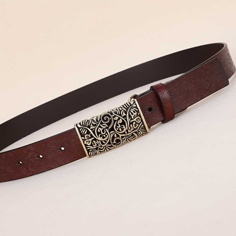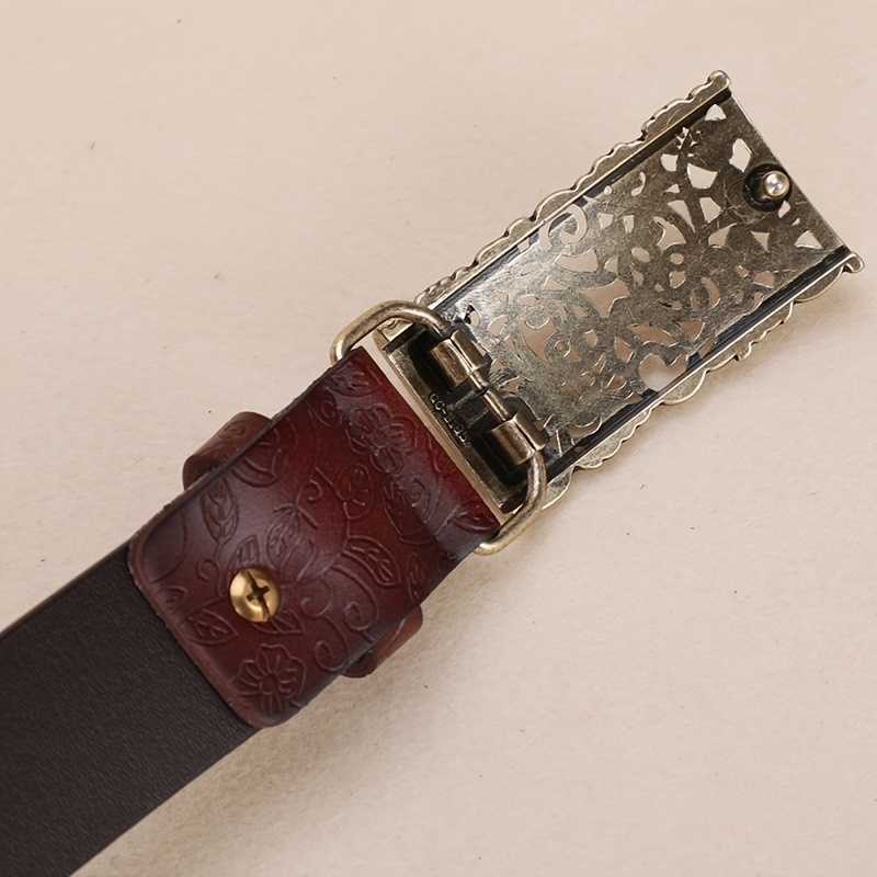 Retro Embossed Cowhide Genuine Leather Belt Wide Engraved Square Buckle