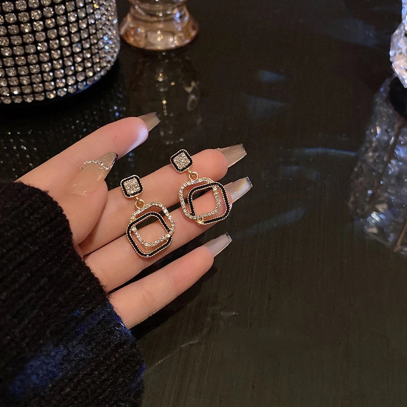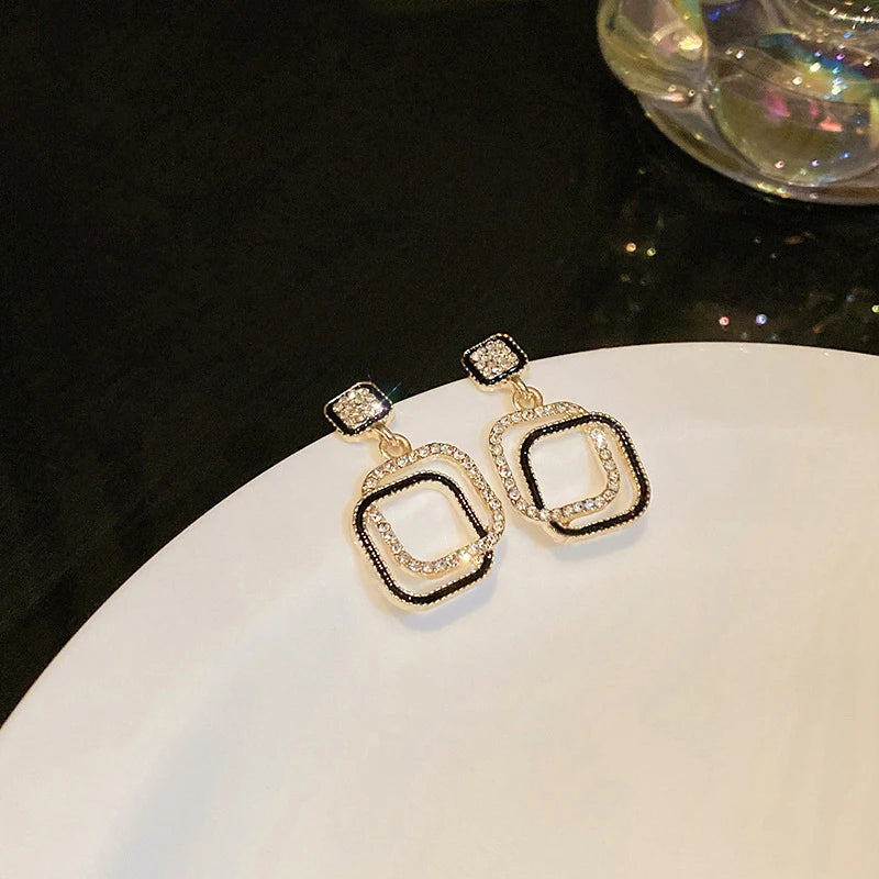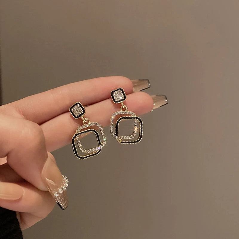 These double-layer square diamond-studded earrings have a retro charm and are perfect for any occasion. Their high-end design ensures they can be worn with a variety of outfits.