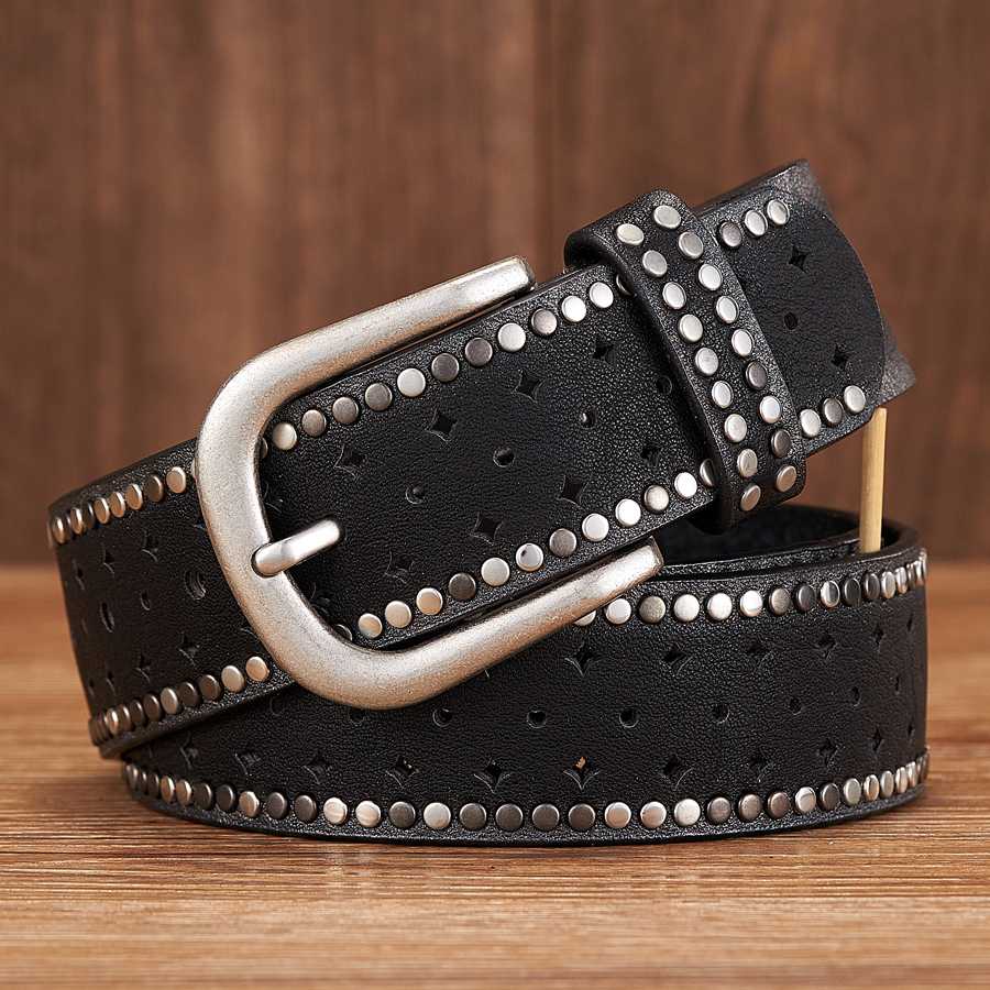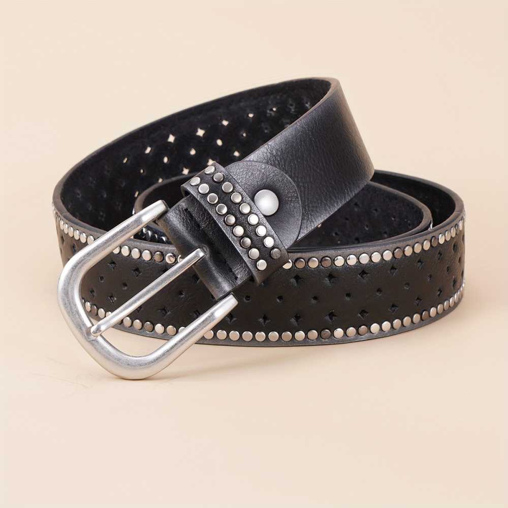 Round Rivet Stud Genuine Leather Y2K Belt Distressed Western for Women
