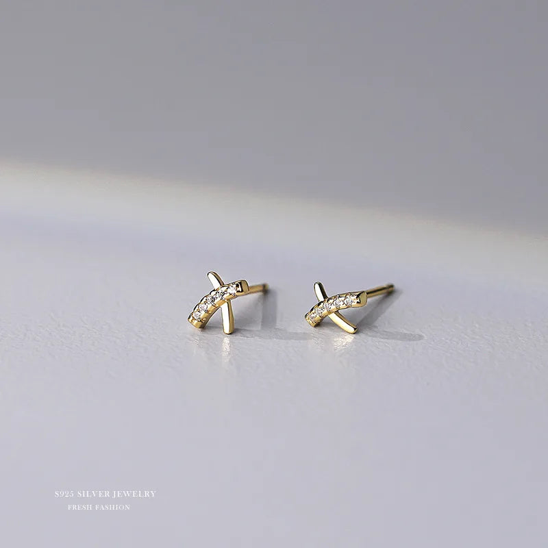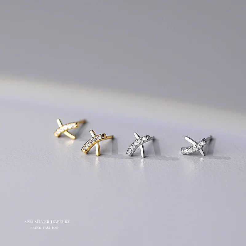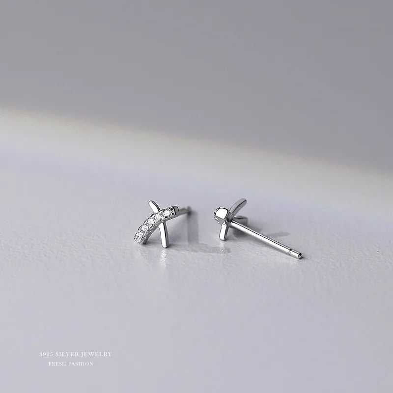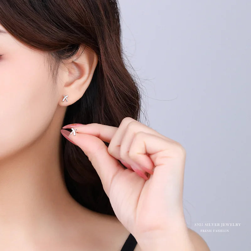 Elegant and chic S925 sterling silver earrings featuring a cross X letter design with zirconia embellishments. Perfect for women's jewelry collection or as a thoughtful gift.