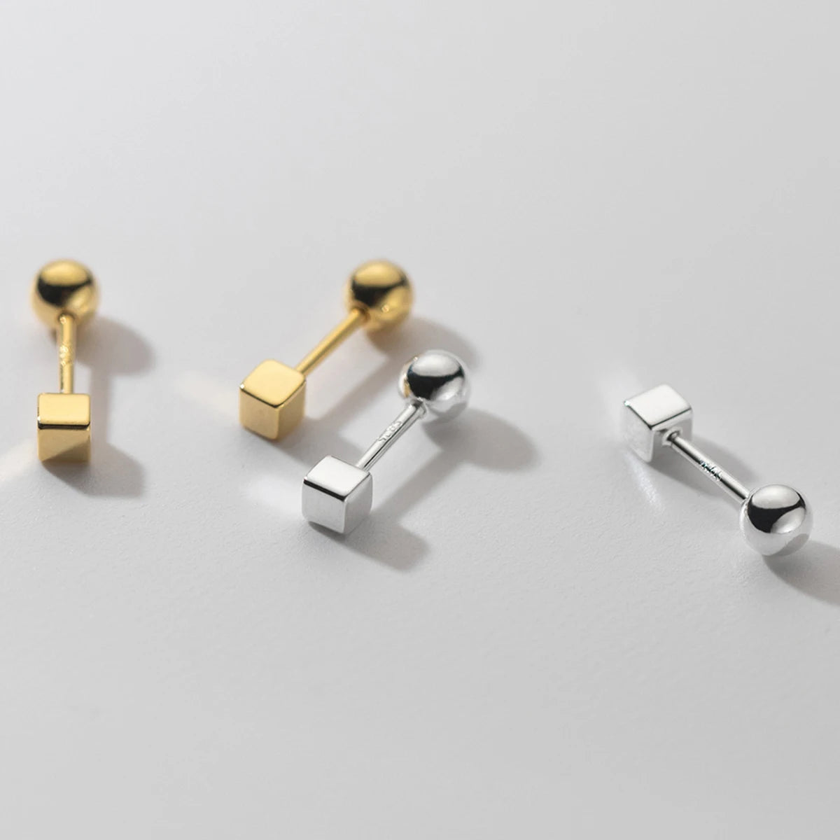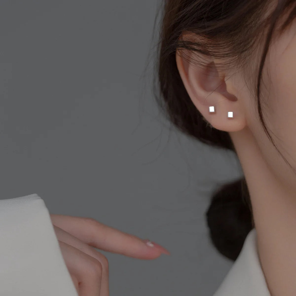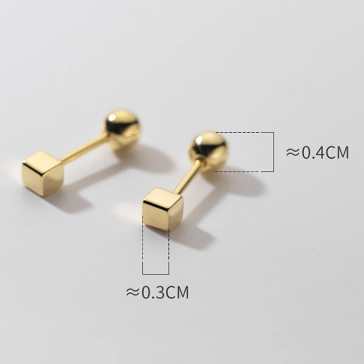 Elegant geometric square earrings crafted from hypoallergenic S925 sterling silver. These three-dimensional cube stud earrings are a stylish addition to any outfit.