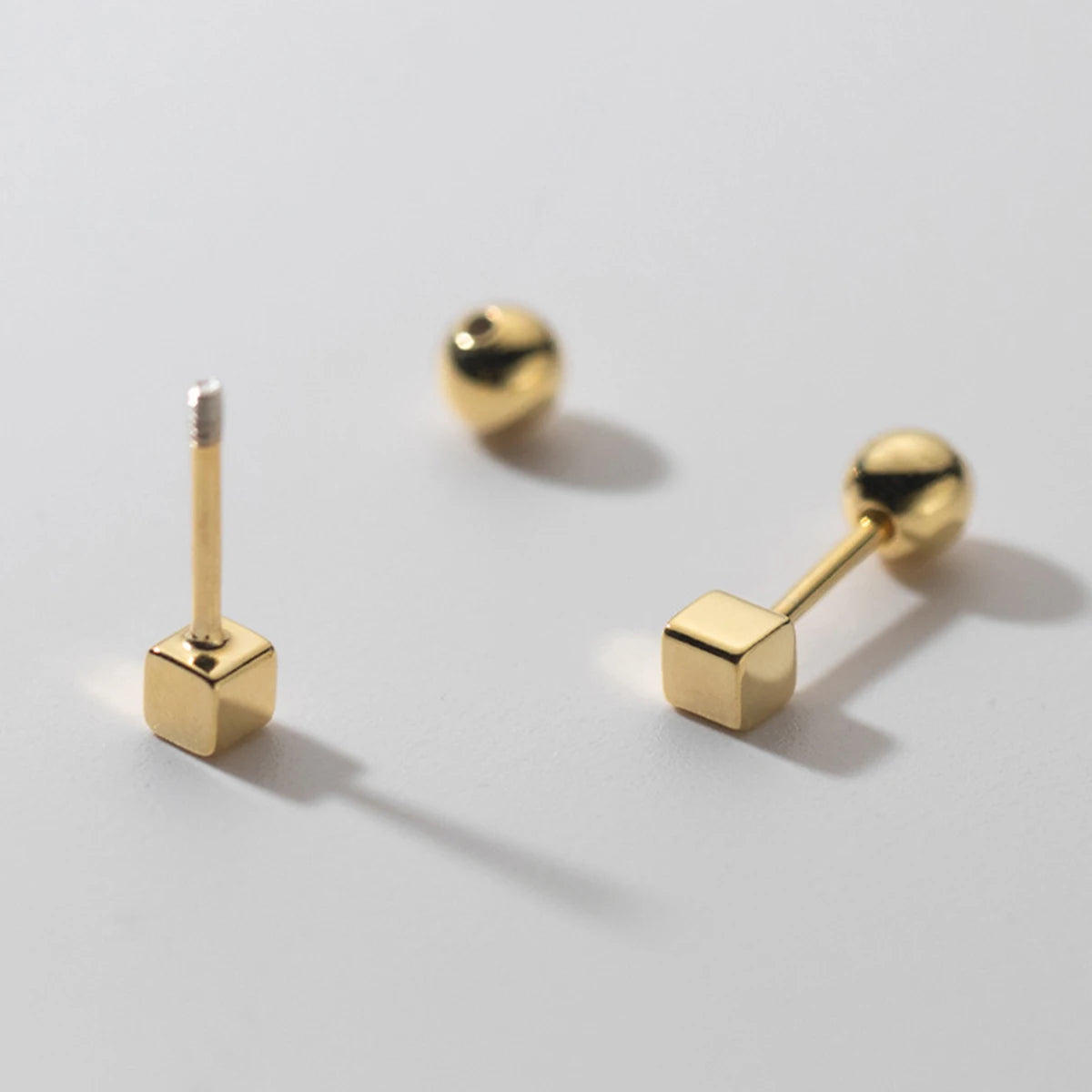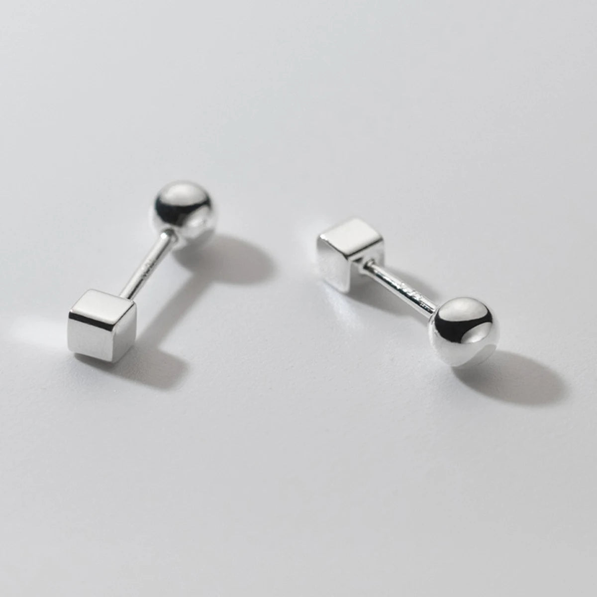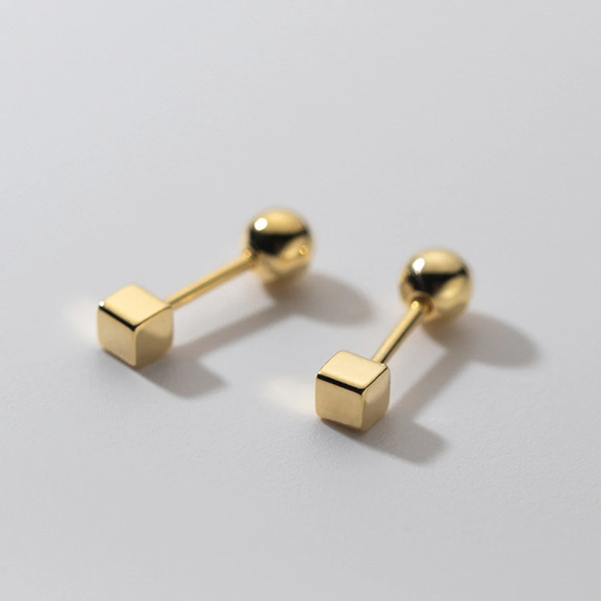 Elegant geometric square earrings crafted from hypoallergenic S925 sterling silver. These three-dimensional cube stud earrings are a stylish addition to any outfit.