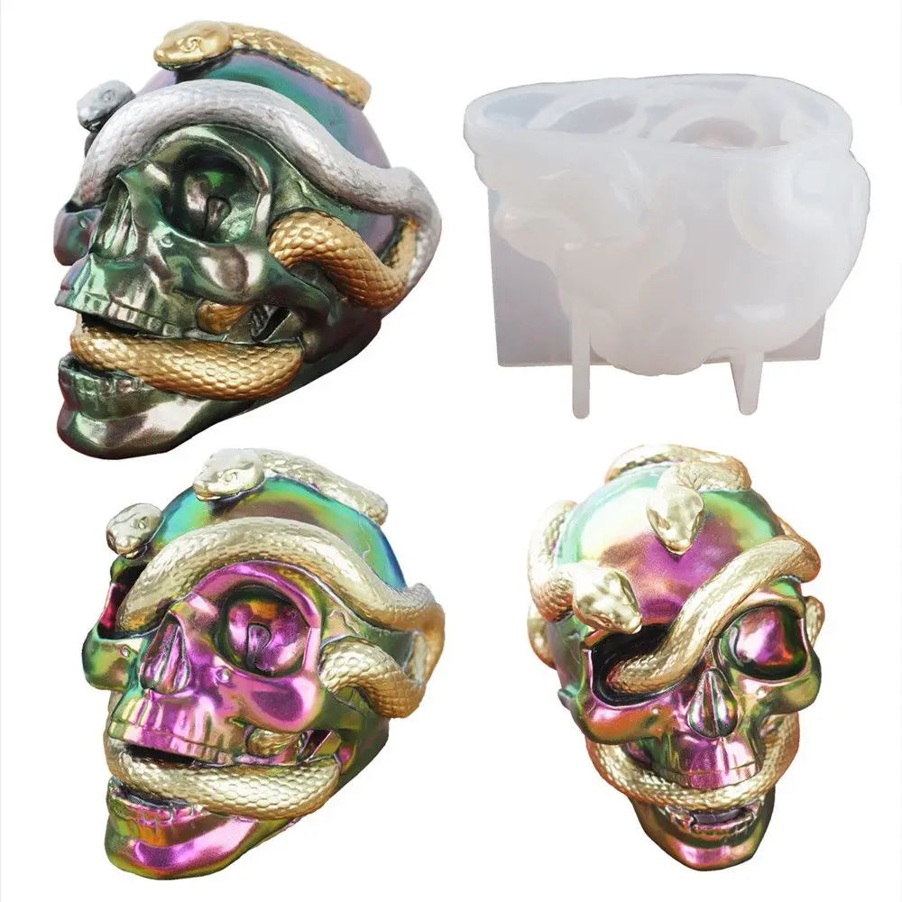 Create unique jewelry with this skull and snake head silicone mold for epoxy resin crafts. Ideal for making pendants and other accessories.