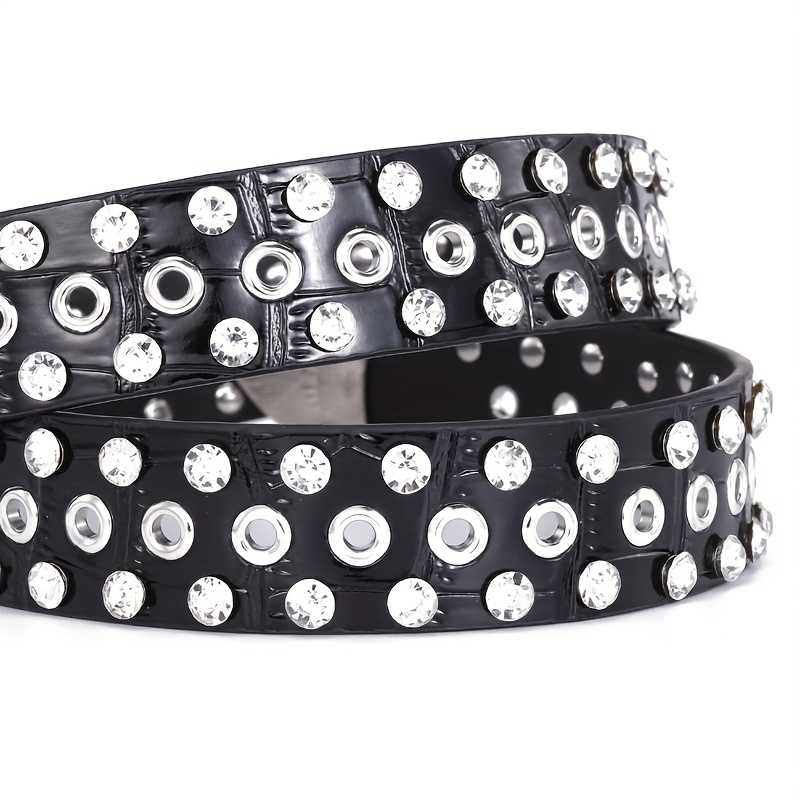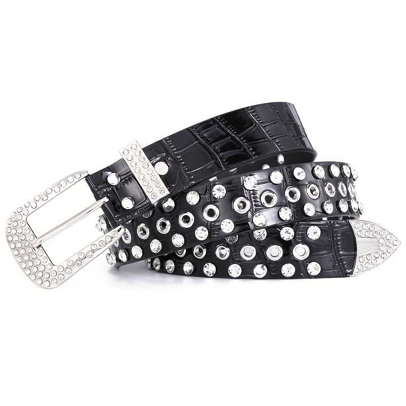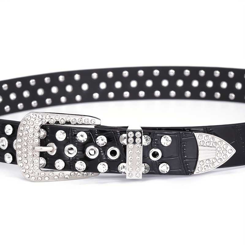 Sparkling Hollow Out Rhinestone PU Leather Belt for Y2K Hip Hop Style