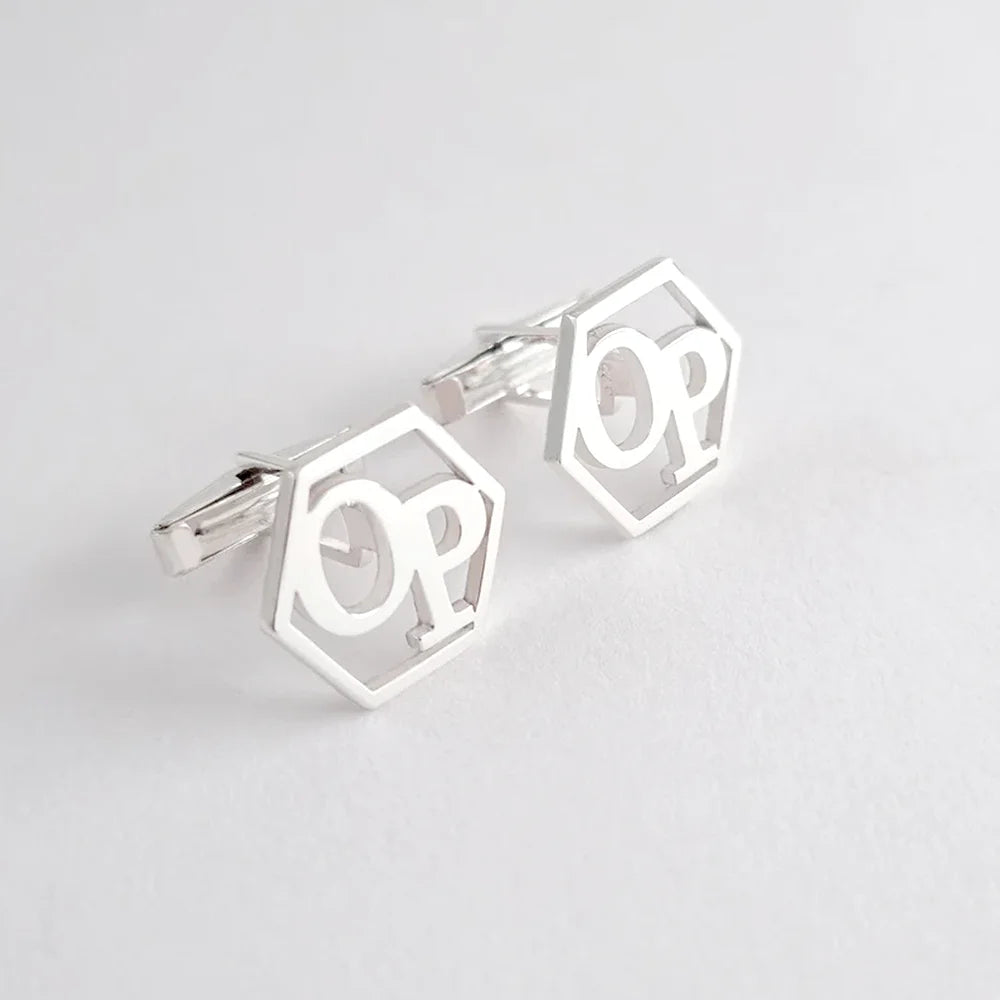 These stainless steel cufflinks add a touch of personality to any suit. They feature hexagon shapes and are perfect for men looking for unique cufflink jewelry.