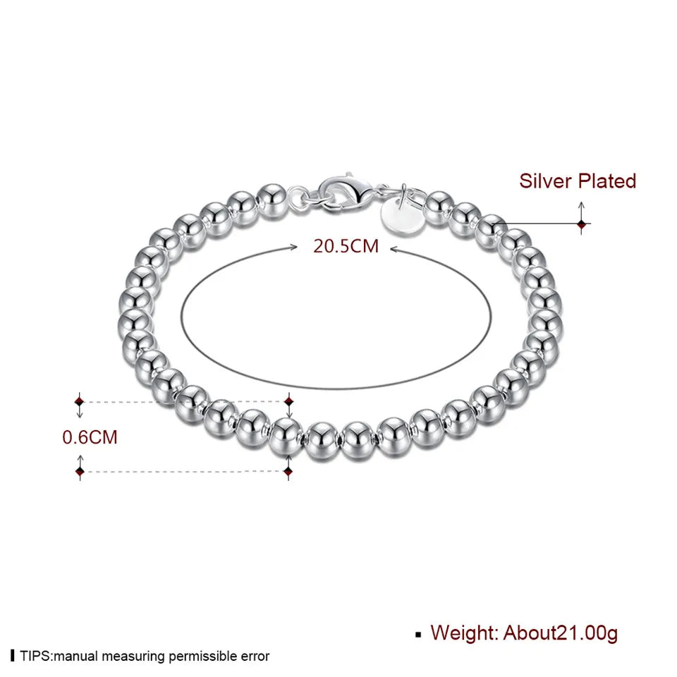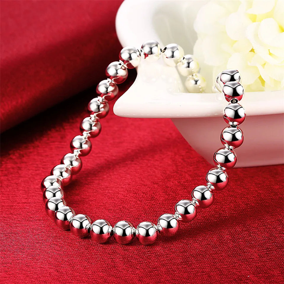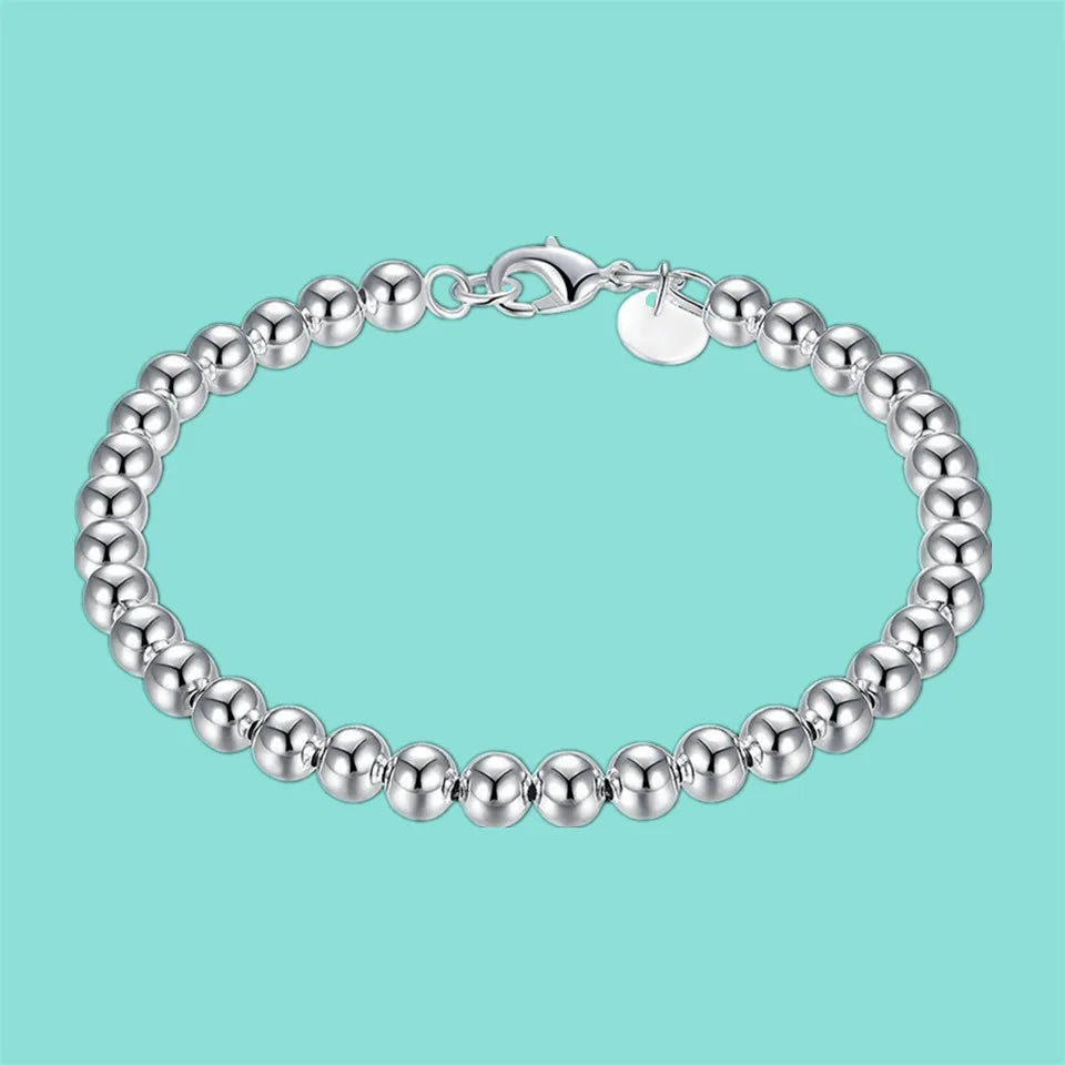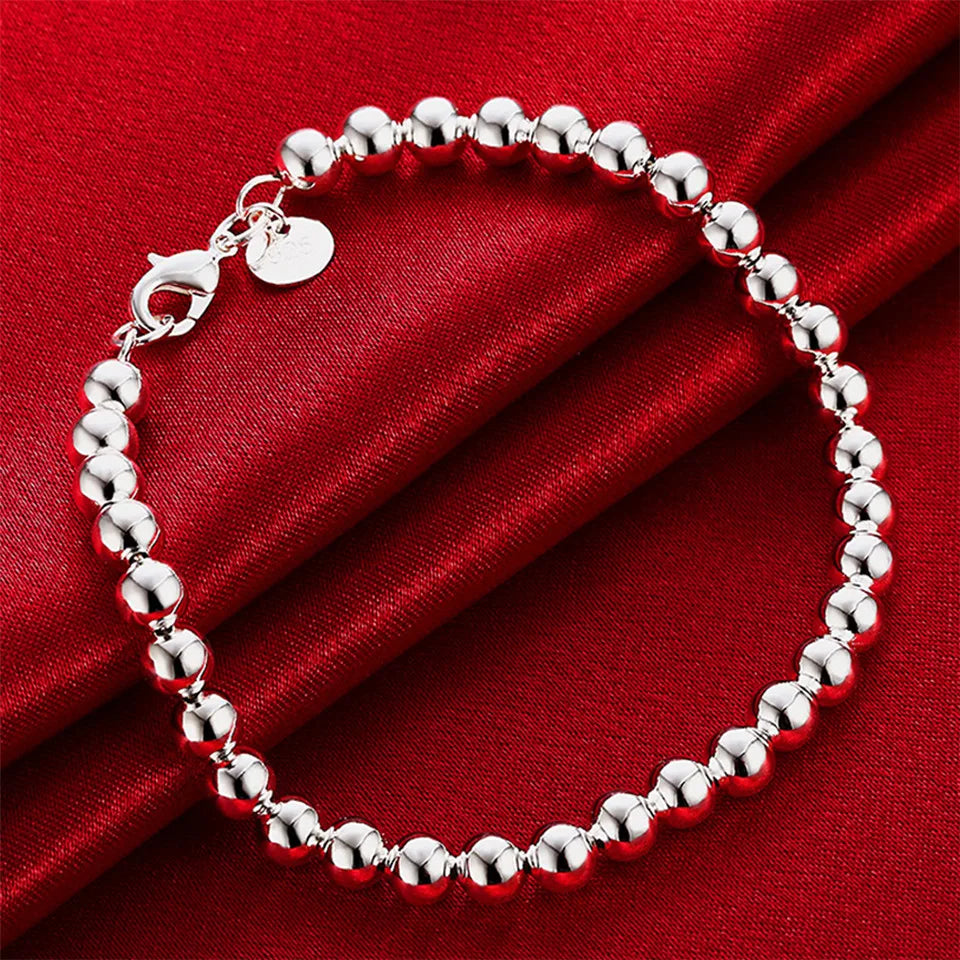 Elegant 925 sterling silver charm bracelet with 6mm beads, perfect for women who appreciate fine jewelry.