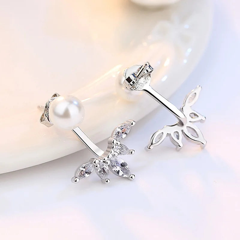 Sterling Silver Pearl Zircon Stud Earrings Wedding Gift