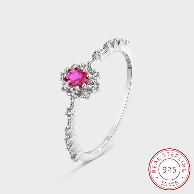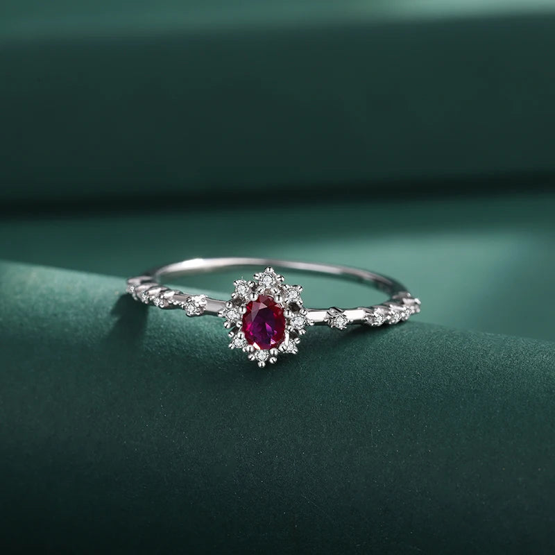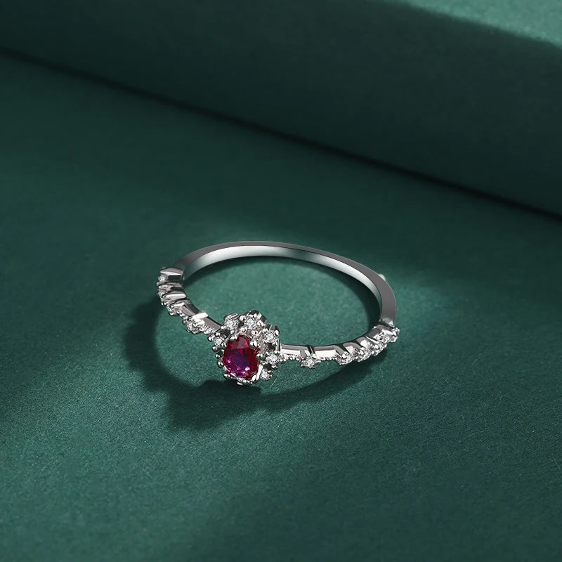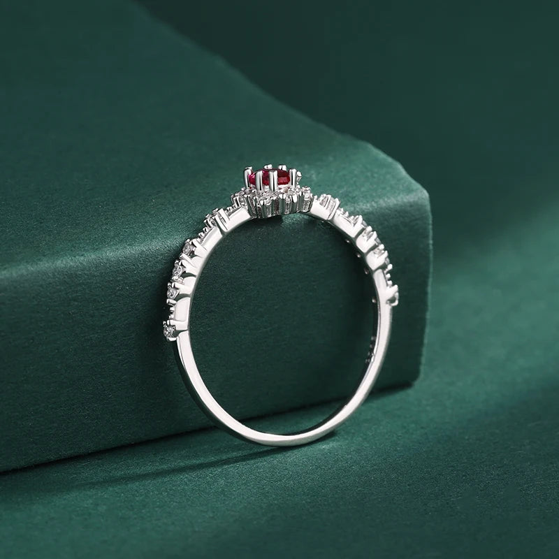 This stunning sterling silver couple ring features a beautiful ruby surrounded by intricate flower design and full diamond accents. It makes a perfect anniversary or holiday gift for your loved one.