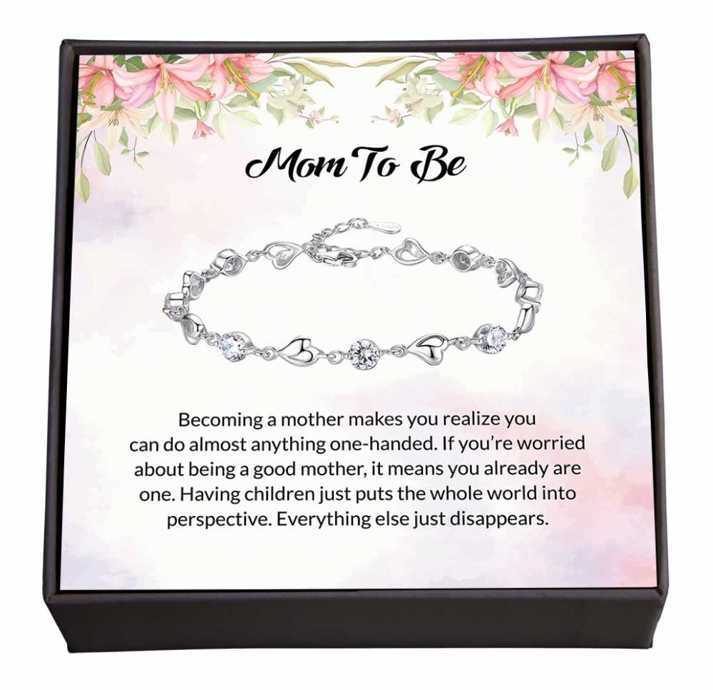 Bling Queen is an affordable fashion jewellery brand with various product types like bracelets, necklaces, earrings, rings, etc. suitable for women, men and kids. Delicate and sophisticated, this women's silver-plated heart zirconia bracelet is a stunning symbol of love and elegance. Featuring a sparkling heart shaped zirconia at its center, the bracelet captures light beautifully, adding a touch of glamour to any outfit. The high quality silver plating ensures a radiant shine and lasting durability, making it ideal for both everyday wear and special occasions. Accompanied by a heartfelt message card wishes for mom to be, this bracelet is designed to convey warmth and appreciation, whether as a birthday, anniversary, or just because gift. Its adjustable chain offers a comfortable fit, perfect for any wrist size, and the timeless heart design is a lovely reminder of cherished connections.