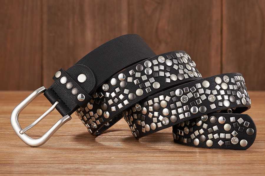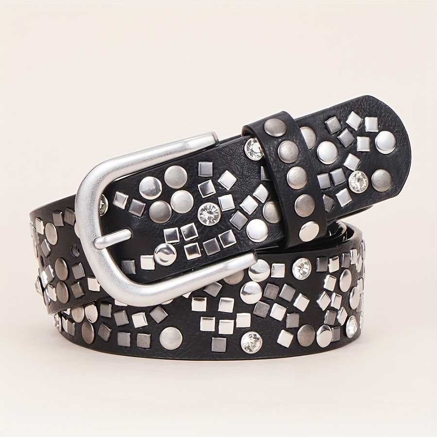 Trendy Y2K Plus Size Women’s Punk Rivet Studded Genuine Leather Belt