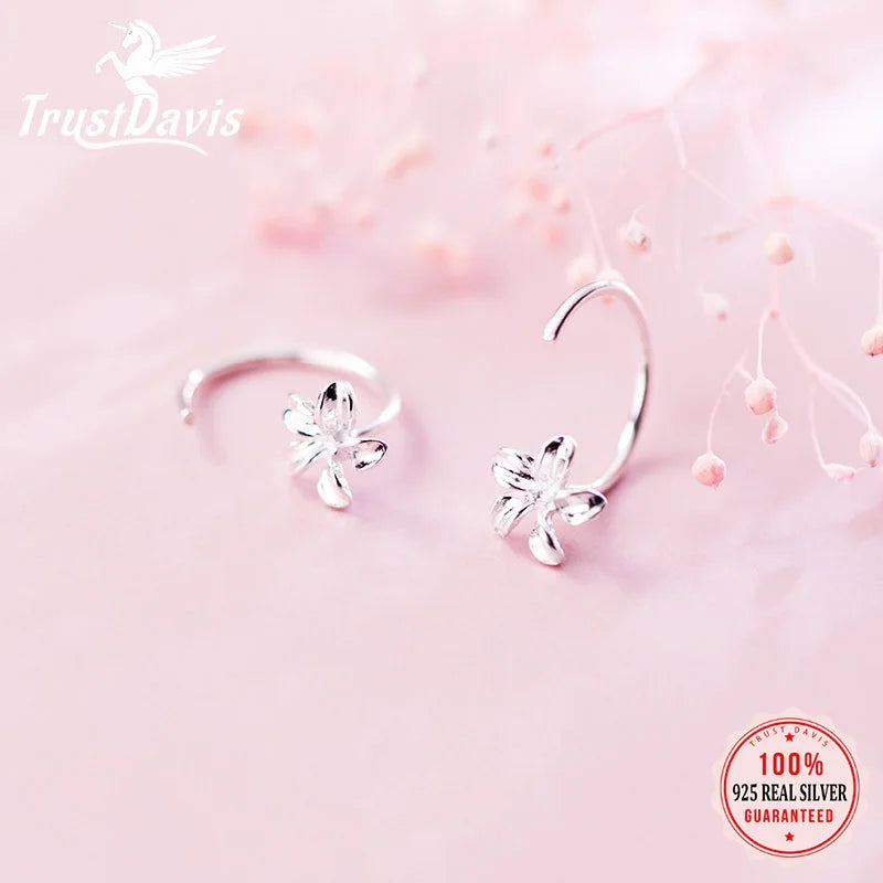 TrustDavis 925 Sterling Silver Flower Stud Earrings 16mm Width Girls Kids Gift