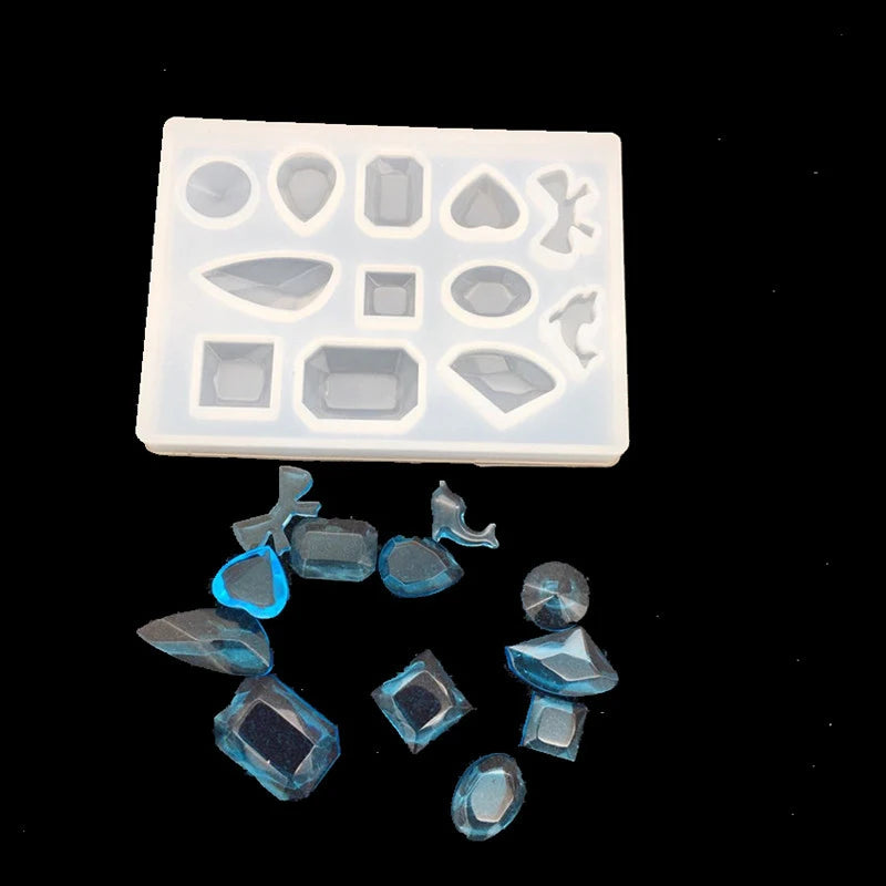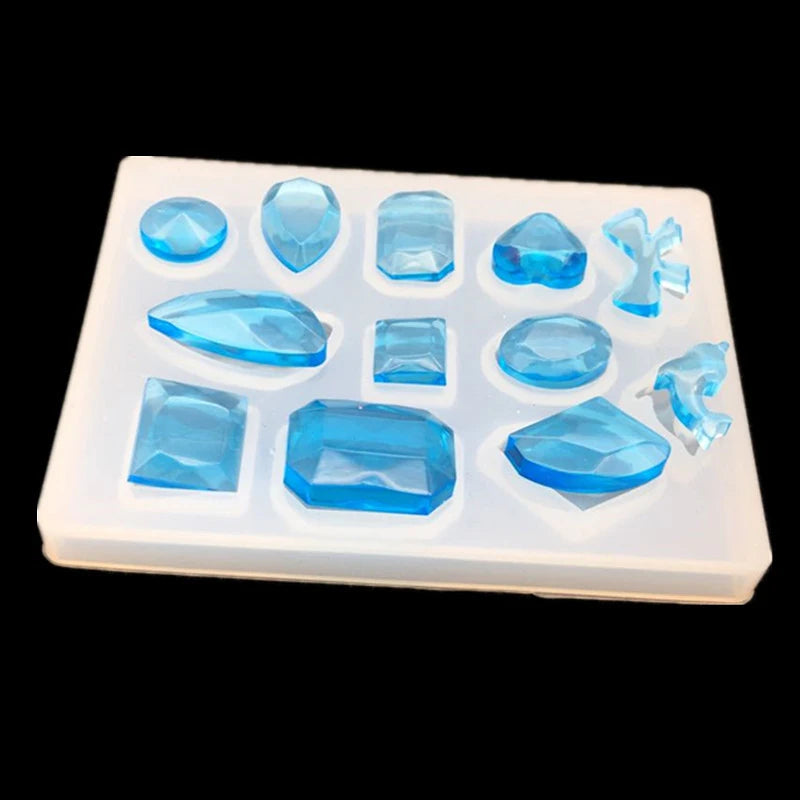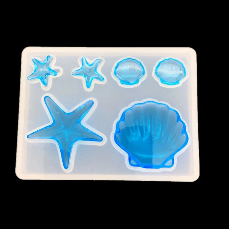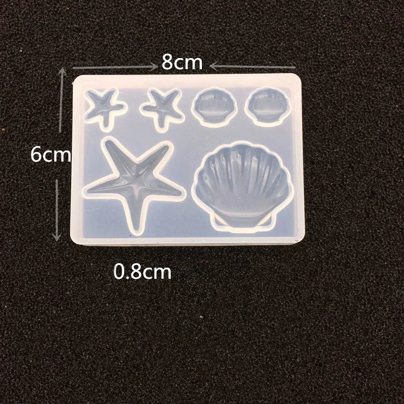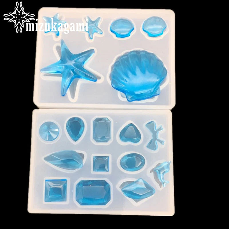 This silicone mold set includes shell, sea star, round, and rhombus shapes for creating resin charms and jewelry. Perfect for DIY projects and decorations.