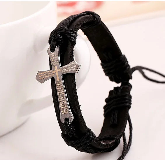 This vintage cross leather bracelet is perfect for men who appreciate a stylish accessory. The braided design adds a touch of uniqueness, while the star and rope elements enhance its appeal. It makes a great gift for any occasion.