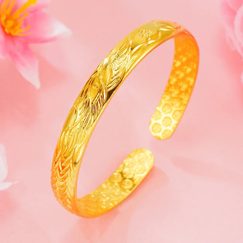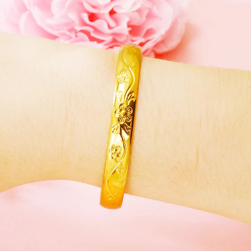 This European woman girl mother party birthday wedding gift bracelet features a beautiful vintage flower design finished with 24KT gold.