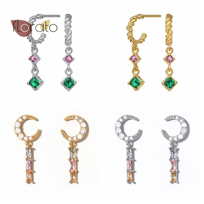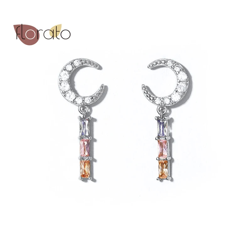 These 925 sterling silver earrings feature a water drop pendant and moon hoop design. Perfect for women who love minimalist jewelry. Makes a great birthday gift.