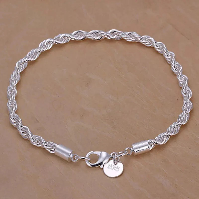 Water Wave Chain Bracelet for Wedding, 925 Silver