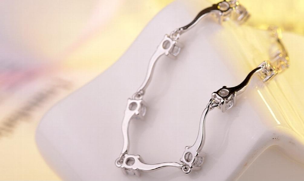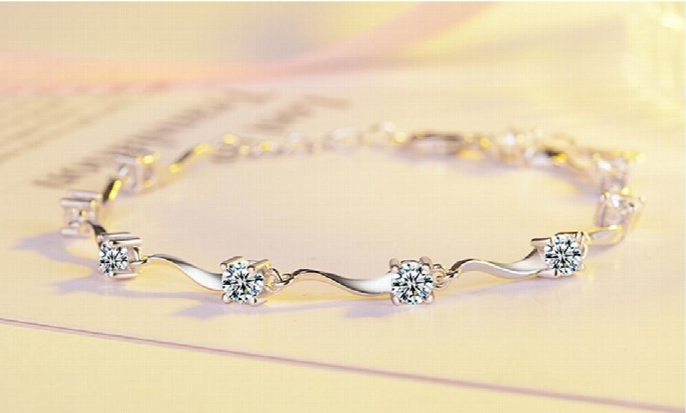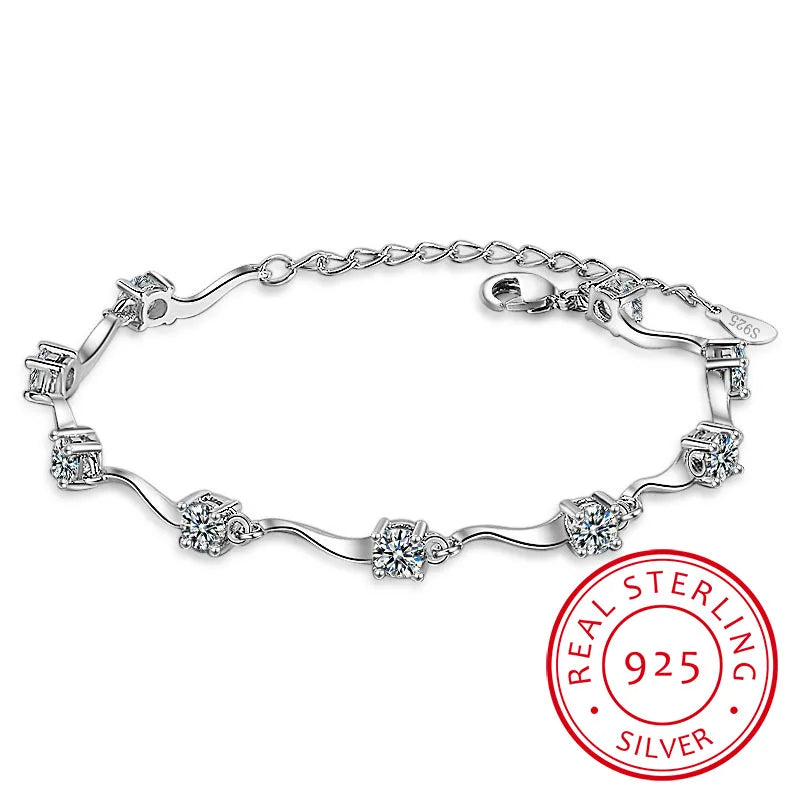 This stylish wave-shaped bracelet is adorned with sparkling AAAAA zirconia stones set in 925 silver, making it perfect for weddings and other special occasions.