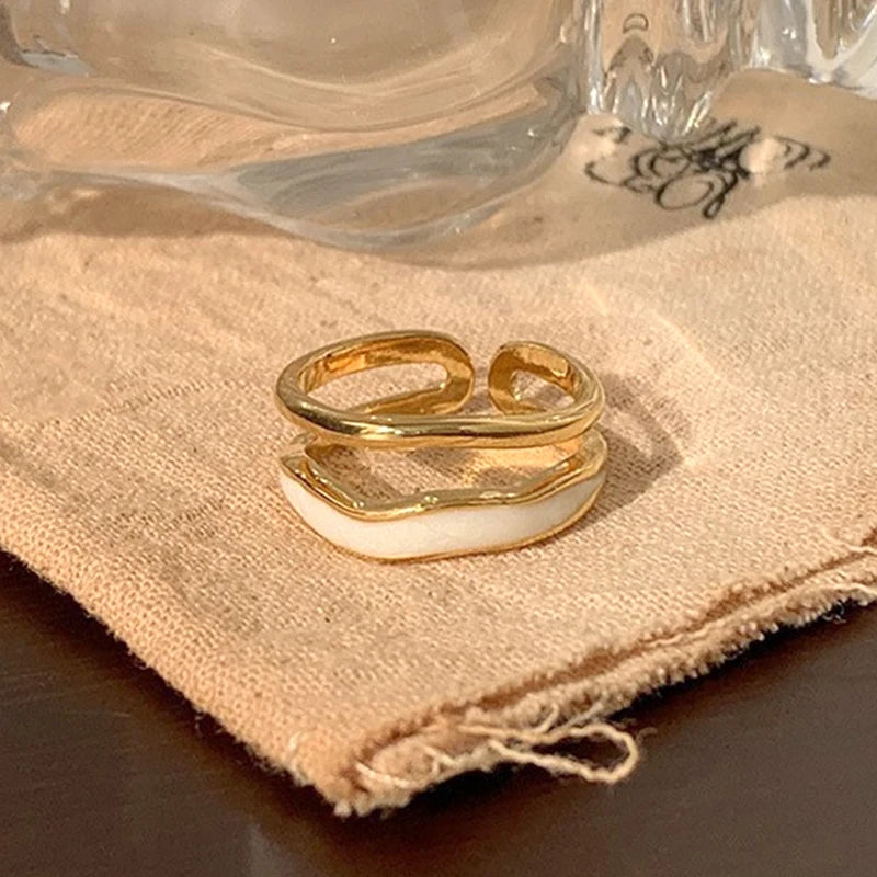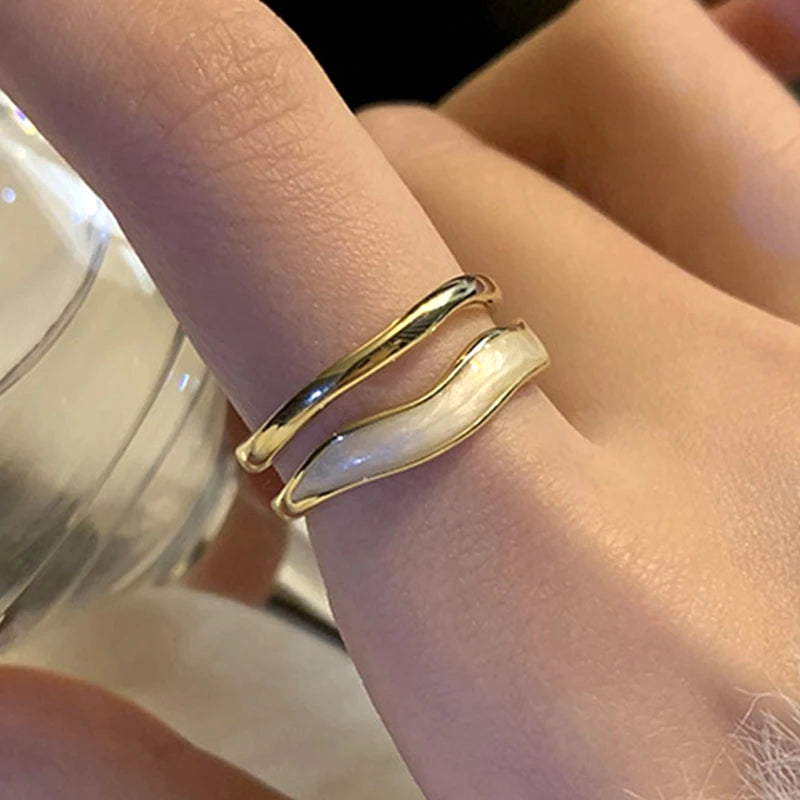 This stunning double layer wave ring is made of 925 silver filled with 14K gold. It features vibrant enamel details, perfect for bridesmaid gifts or everyday wear.