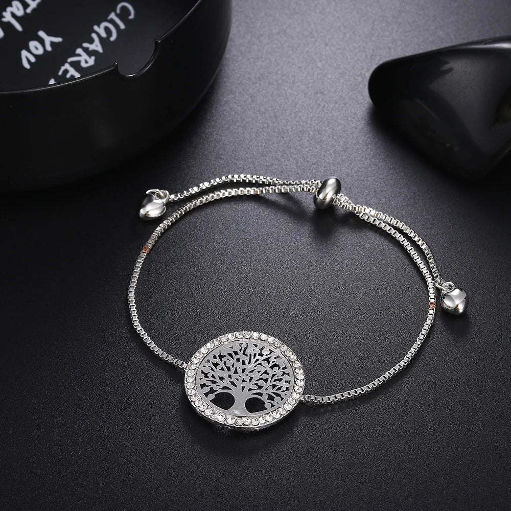 Embrace the mystical aura with this Tree of Life wristband featuring a cutout design and crystal accents. Elevate your style with this fantastic wristlet trinket pendant.