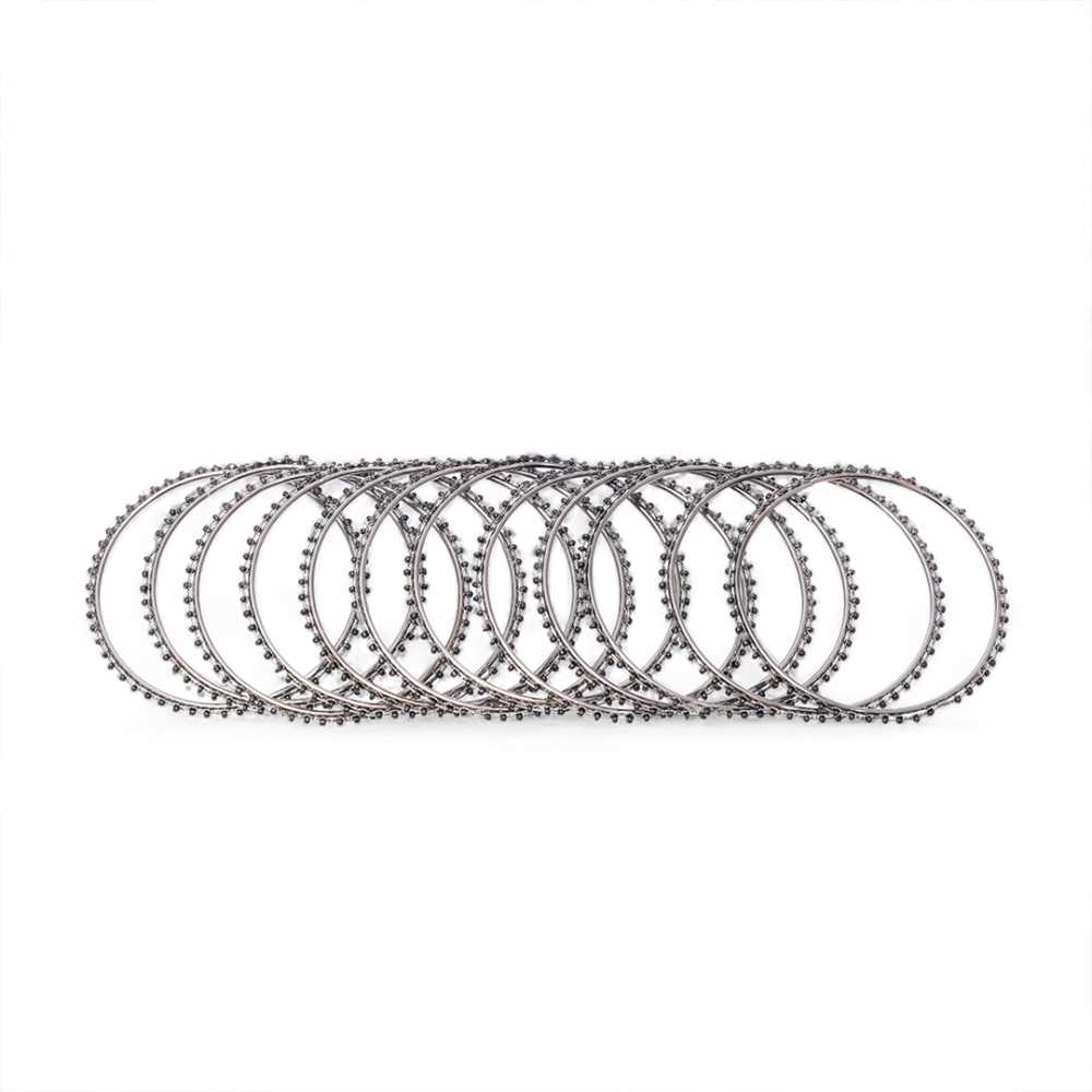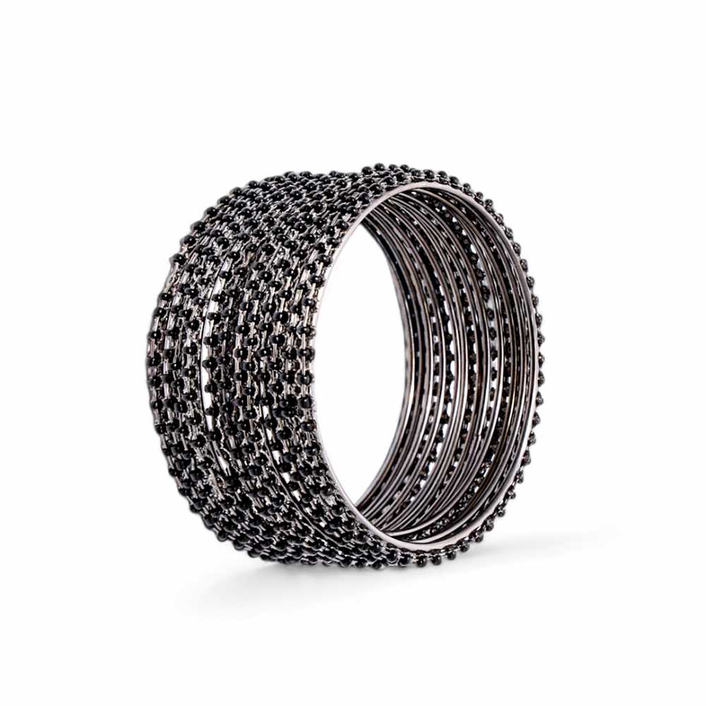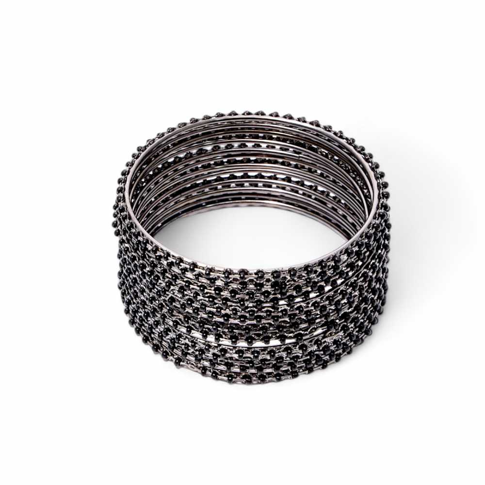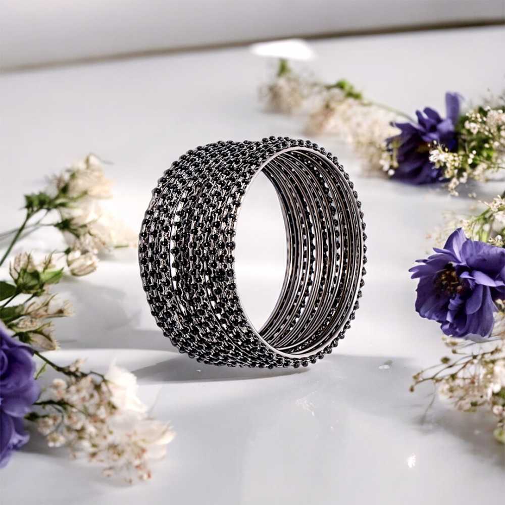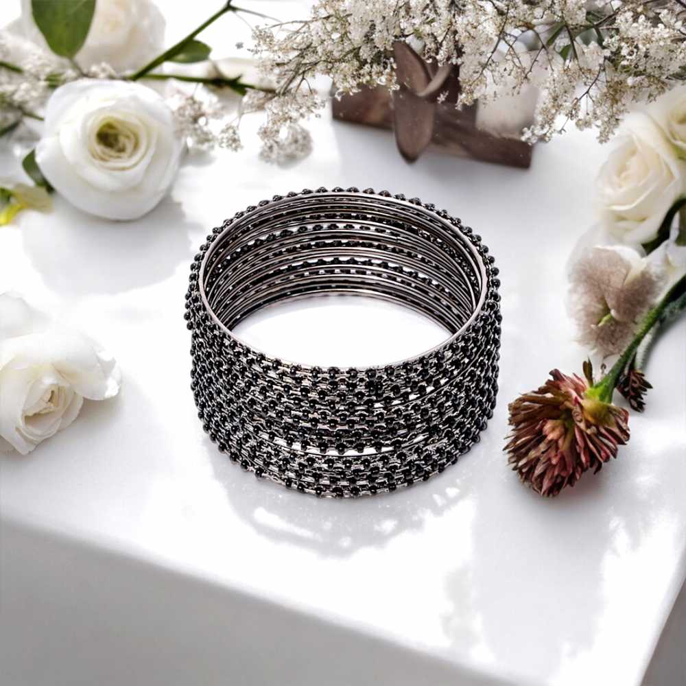 Women's Fashion Oxidized Silver Black Bangle Set