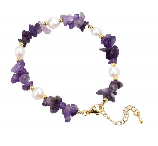 • Product Particulars: The bracelet is crafted using high quality gold plated materials. The amethyst chips and pearls are of superior quality and bracelet features a lobster clasp