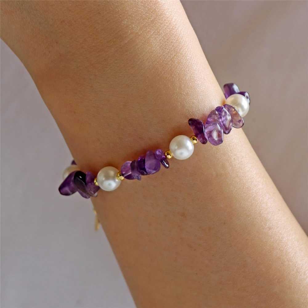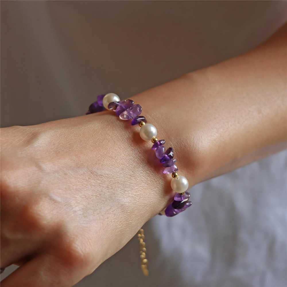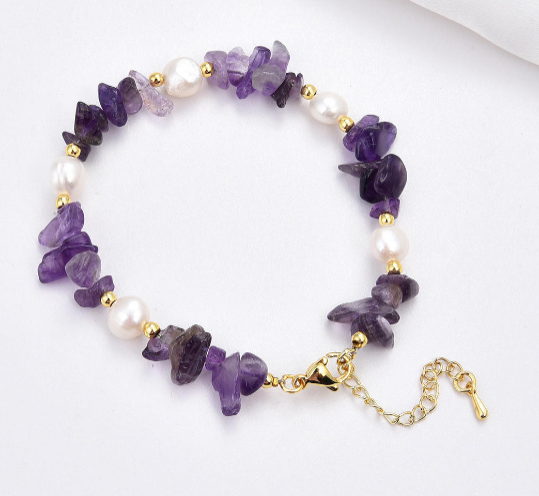 Women's Gold Plated Amethyst Chip Beads Healing Pearl Bracelets