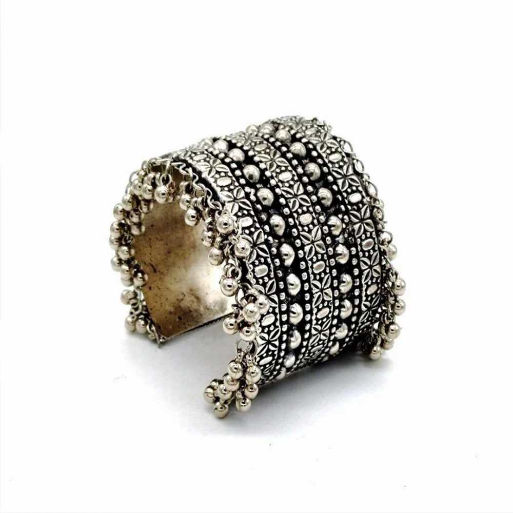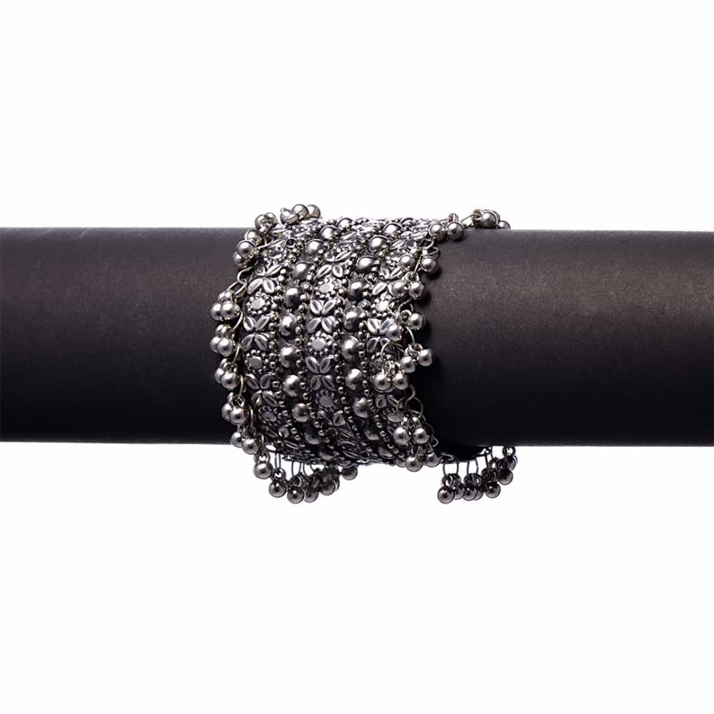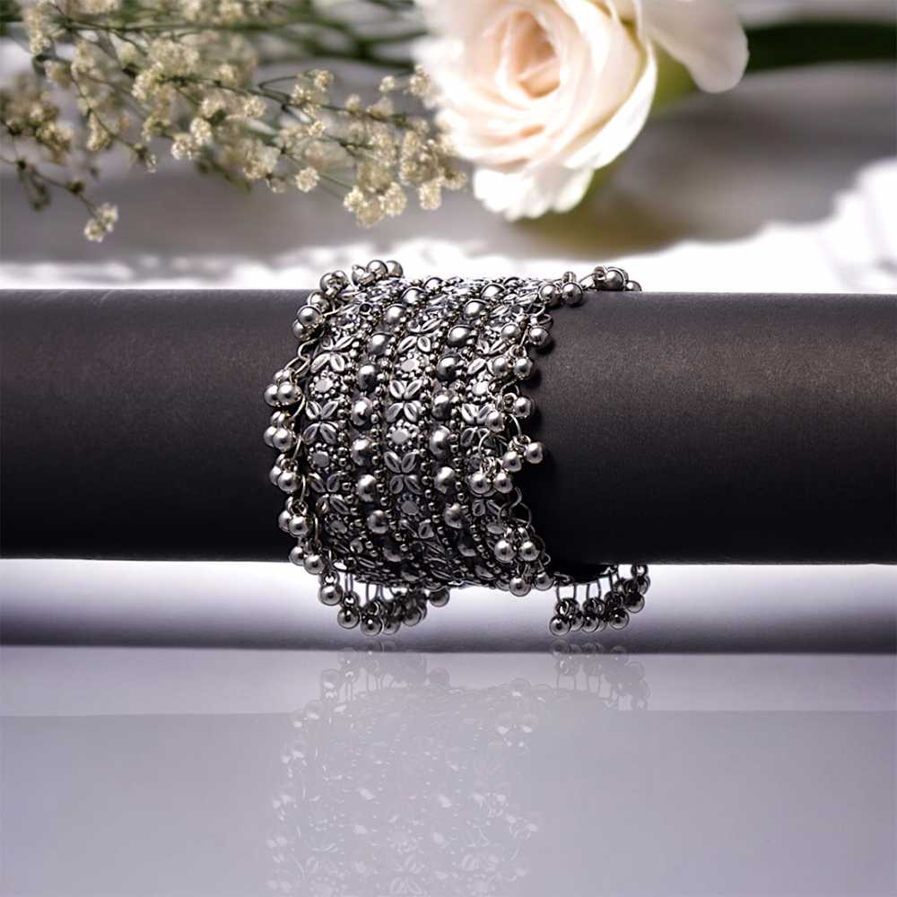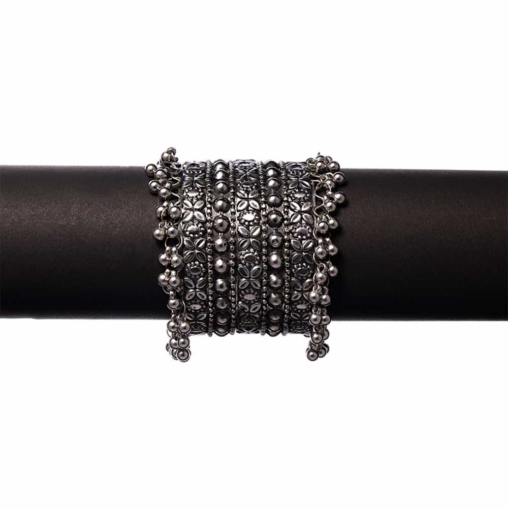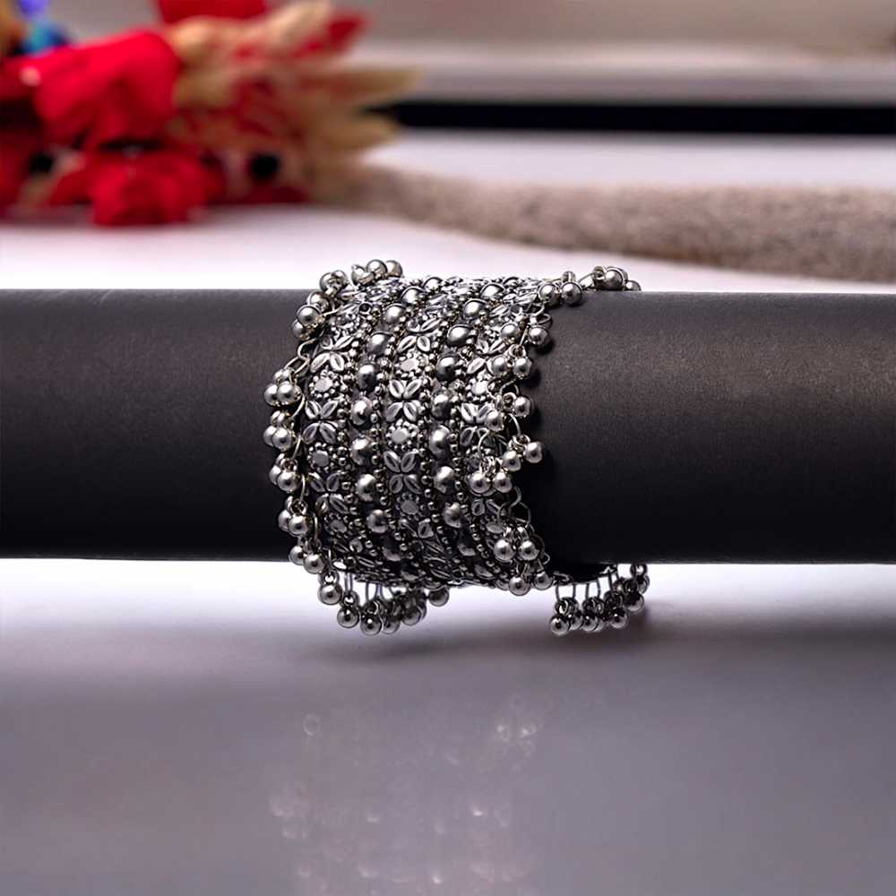 Women's Metallic Oxidized Silver Kada Cutwork Bangle