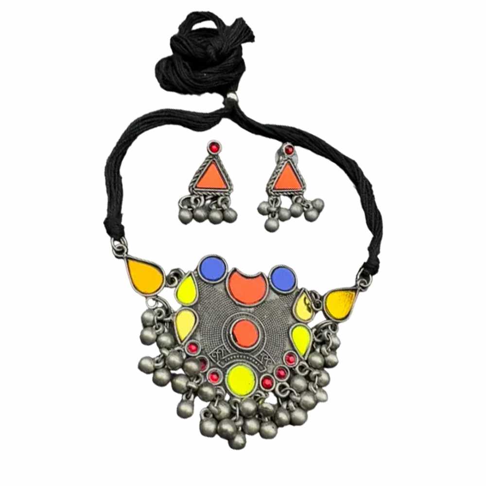 Women's Oxidized Black Polish Colorful Mirror Jewelry Set