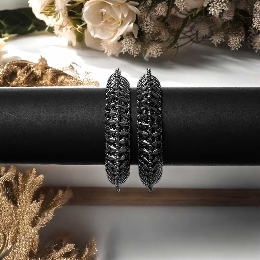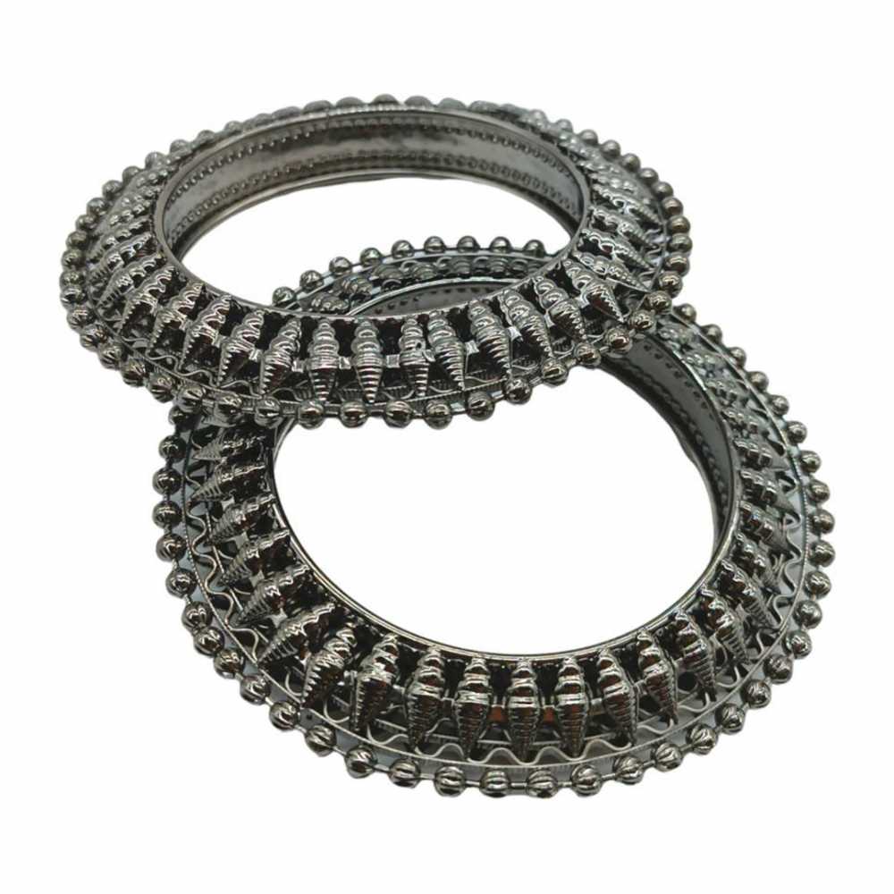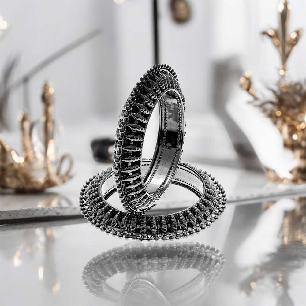 Women's Oxidized Silver Black Polish Ethnic Kada Bangles