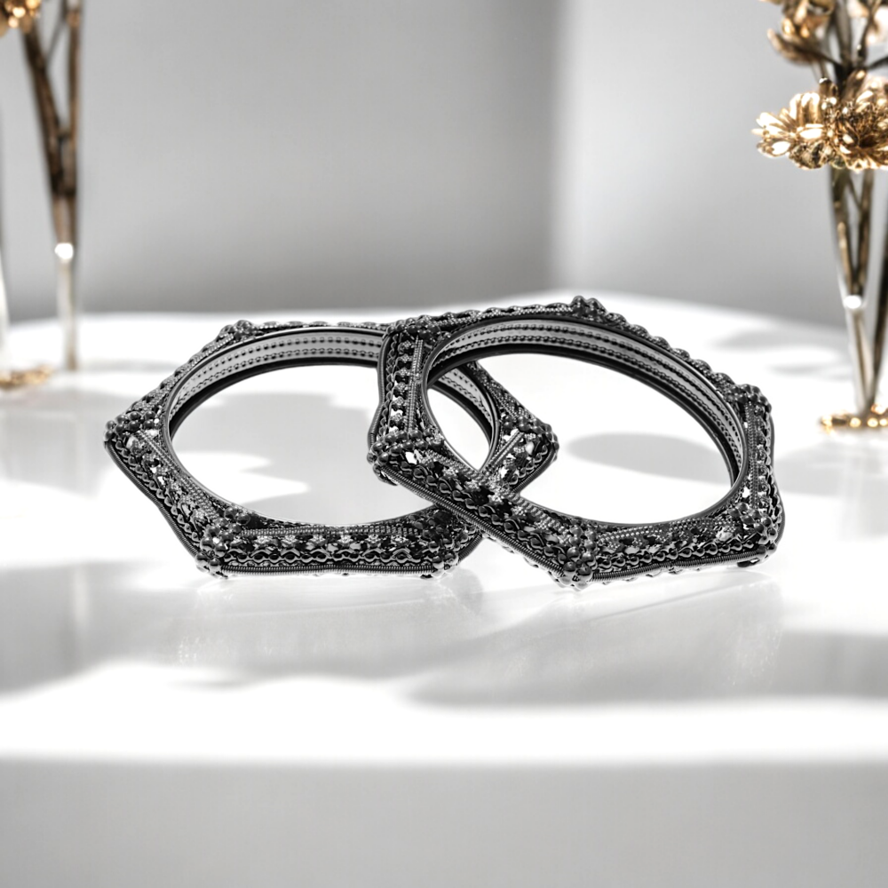 Women's Silver Oxidized Hexagon Shaped Kada Bangle Set