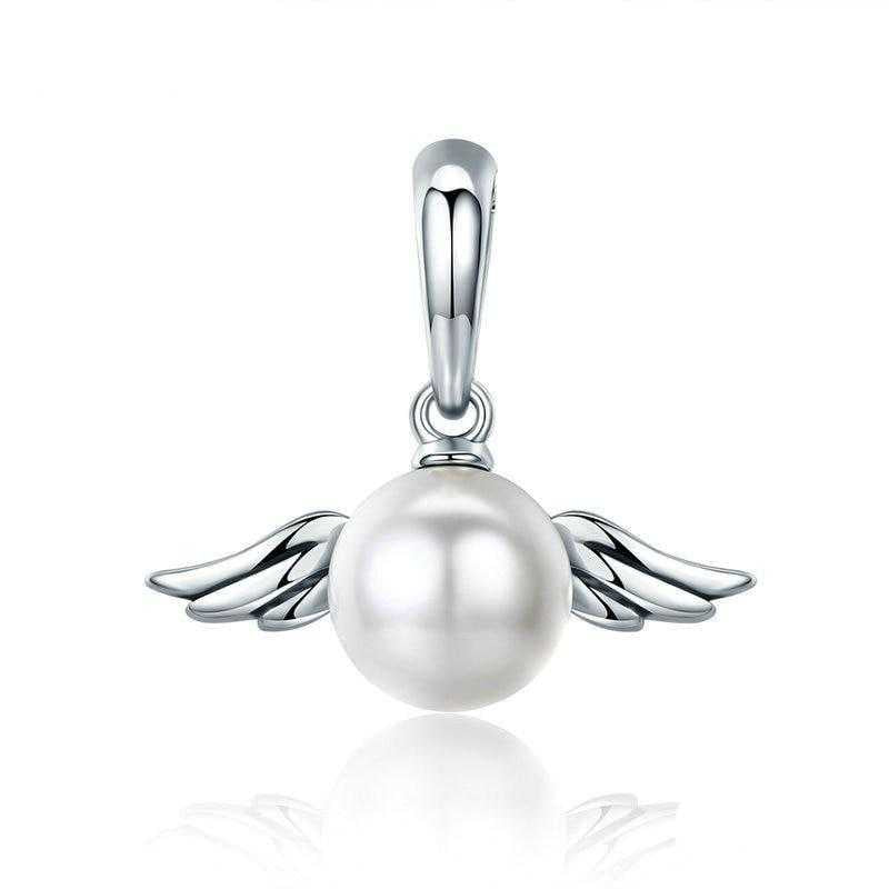 Women's Silver Plated Angel Wing Feather Charm With Pearl