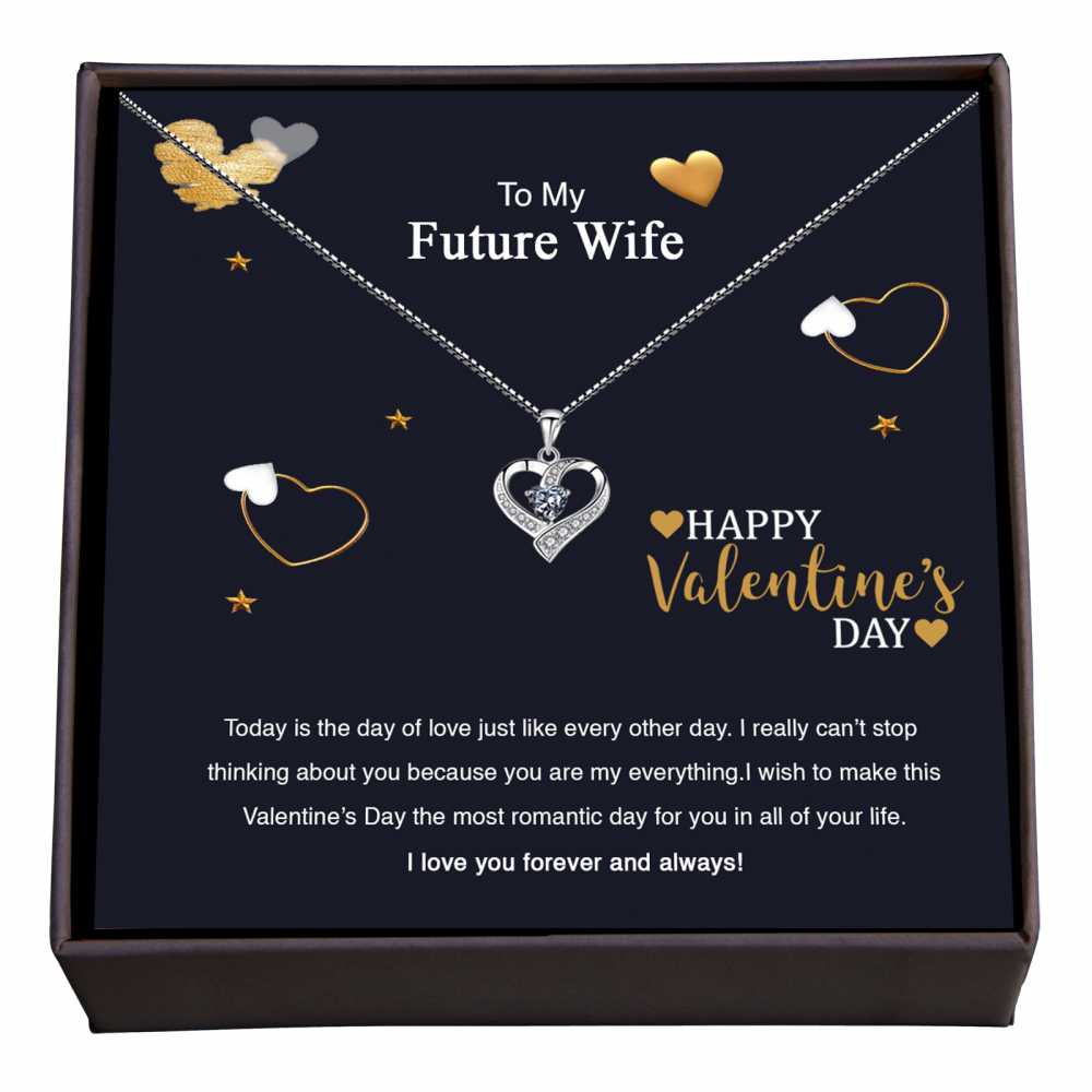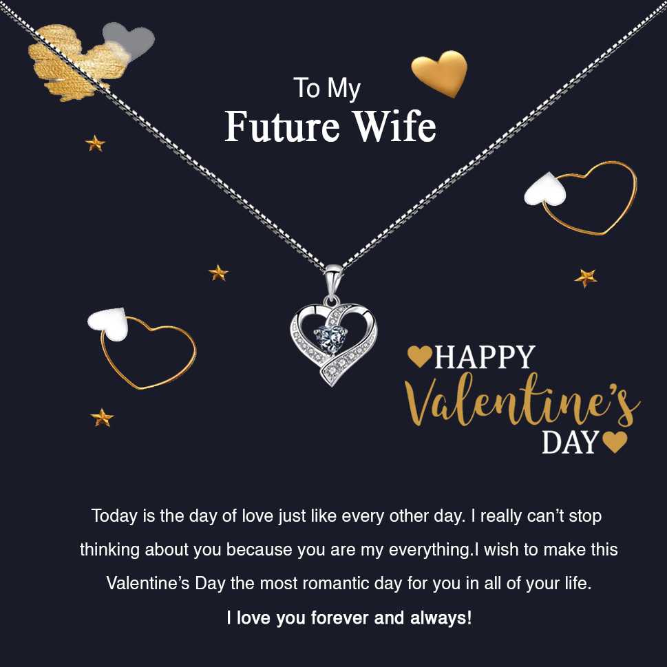 Women's Silver Plated Zirconia Heart Pendant With To My Future Wife Valentine's Message Card