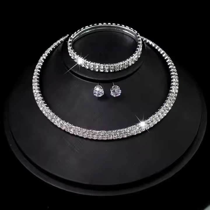 Bling Queen is an affordable fashion jewellery brand with various product types like bracelets, necklaces, earrings, rings, etc. suitable for women, men and kids. This three piece jewellery set includes choker necklace, stud earring and a bangle bracelet. The centerpiece of this set is a striking two layered choker necklace that wraps the neck in a cascade of light. Each layer is meticulously encrusted with perfectly cut zirconia stones, arranged to create a seamless flow of brilliance. The zirconia stud earrings are a masterclass in understated luxury. Each earring showcases a single, flawlessly cut zirconia stone. The minimalist design is timeless, offering a subtle yet impactful way to accessorize. The bangle bracelet is the finishing touch to this exquisite set, offering a sleek silhouette that encircles the wrist in shimmering elegance. The simplicity of the design allows the brilliance of the stones to take center stage.