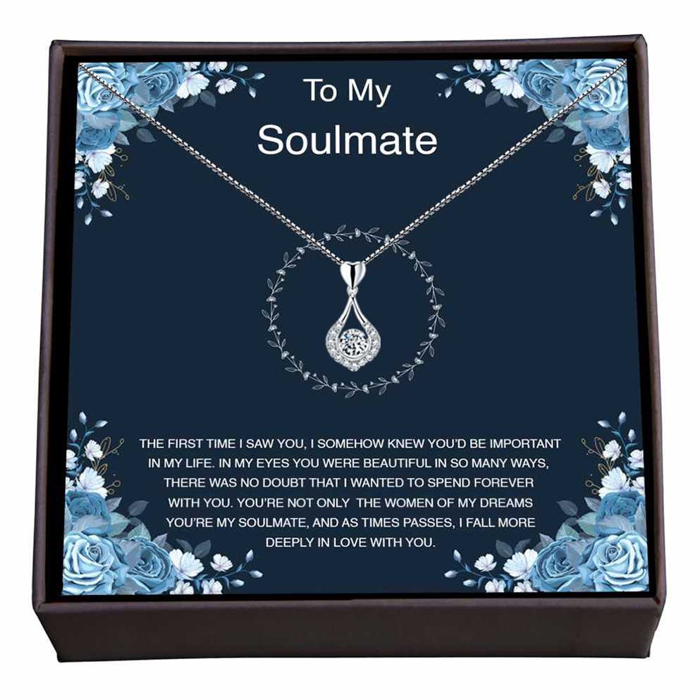 Women's Silver Plated Teardrop Pendant With To My Soulmate Message Card