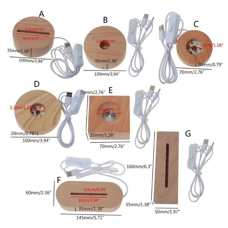 Enhance your resin art and crafts with this wood LED display base that features a rectangle, round, and oval shape. Perfect for showcasing your creations in a charming lighted setting.
