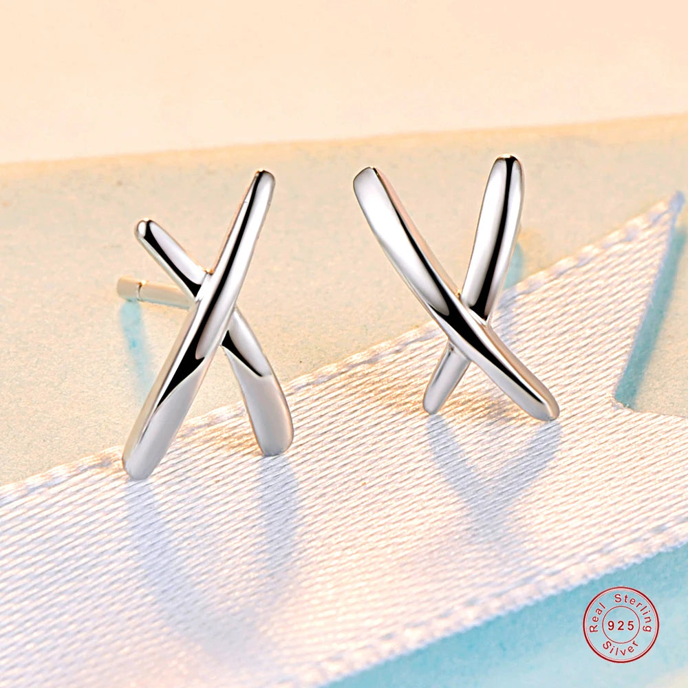 Add a touch of sophistication to your outfit with these X-shaped ear studs made of 925 sterling silver. Perfect for everyday wear or special occasions.